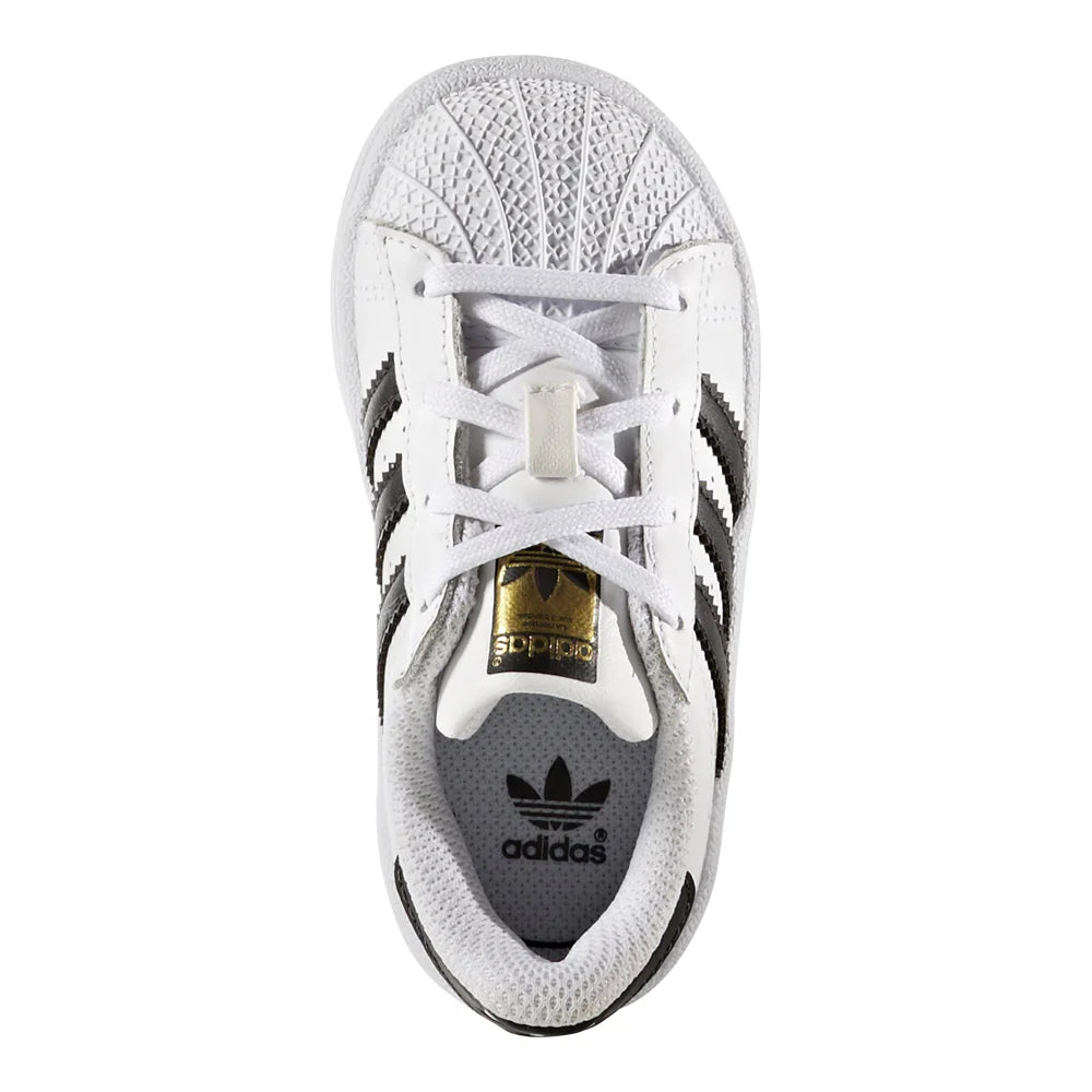 A hit on the b-ball court and then the street, the Superstar has been crisscrossing the globe since 1970. These infant shoes take all the authentic heritage details, like a rubber shell toe and serrated 3-Stripes, and shrink them down into a pair for little feet.