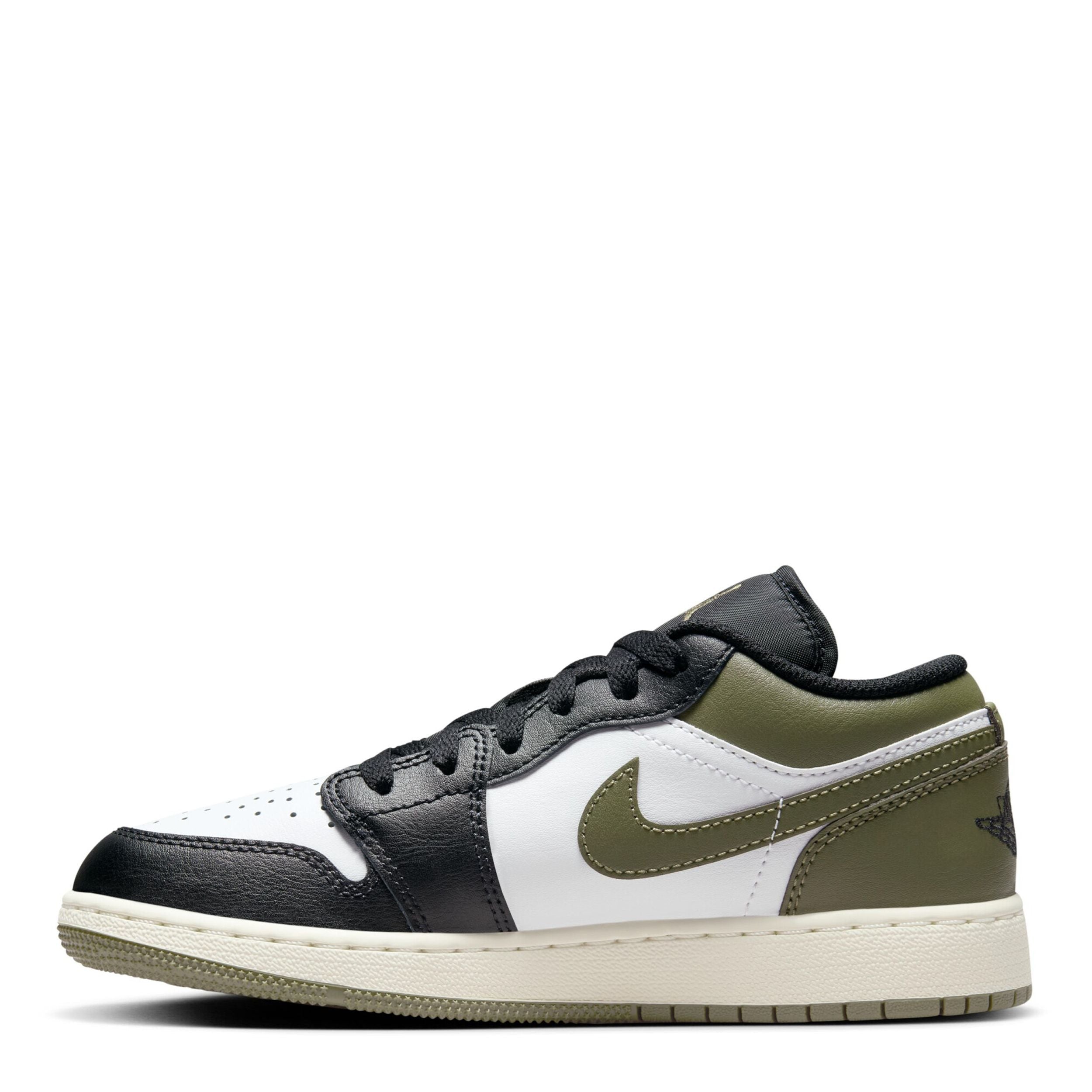 Air Jordan 1 Low "Black Toe Medium Olive" Big Kid Boys'/Girls' Sneaker