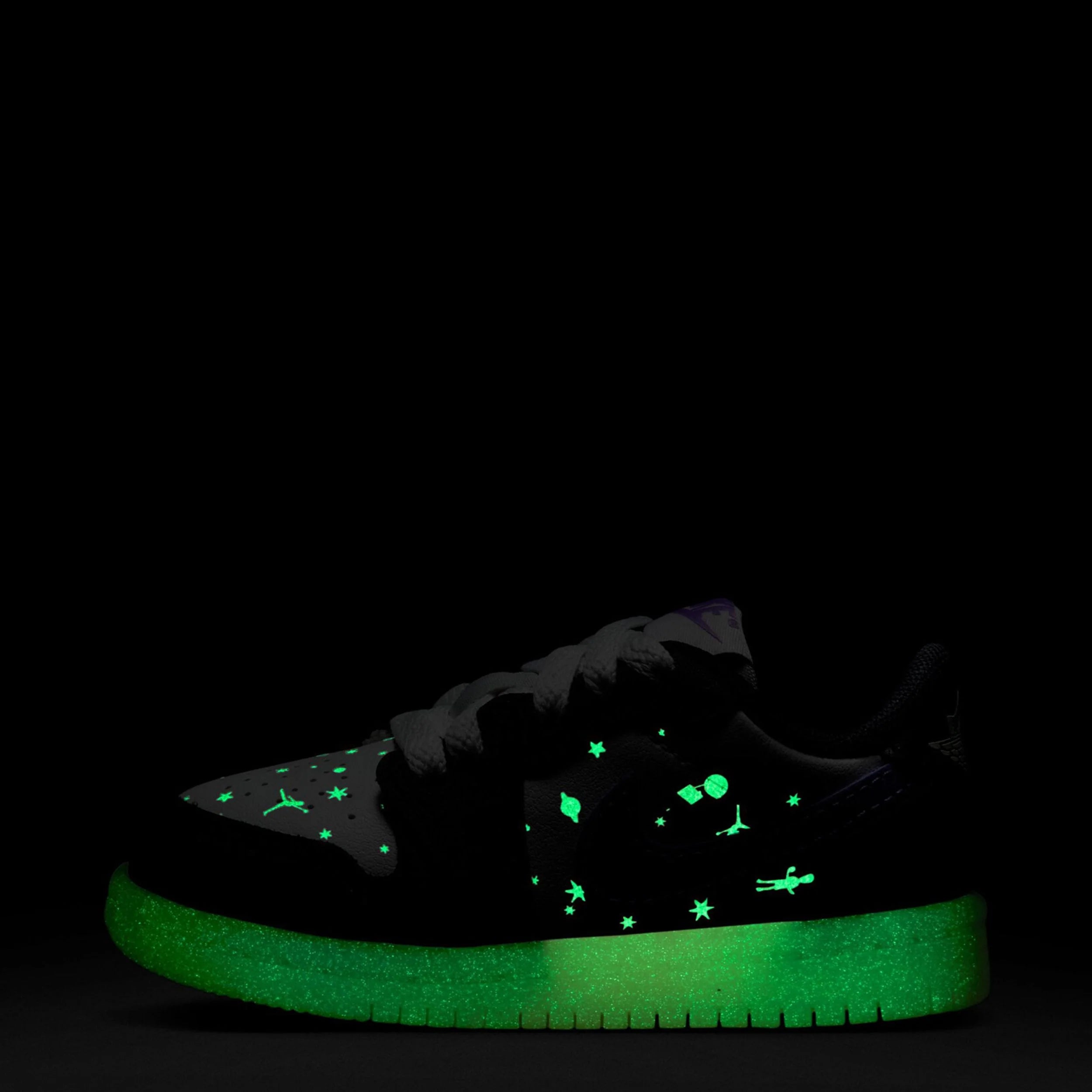 This Jordan 1 Retro is something special. Vivid raspberry accents pop against the premium black leather upper while glow-in-the-dark details make for a hidden surprise, creating a pair of kicks every adult will be jealous of.