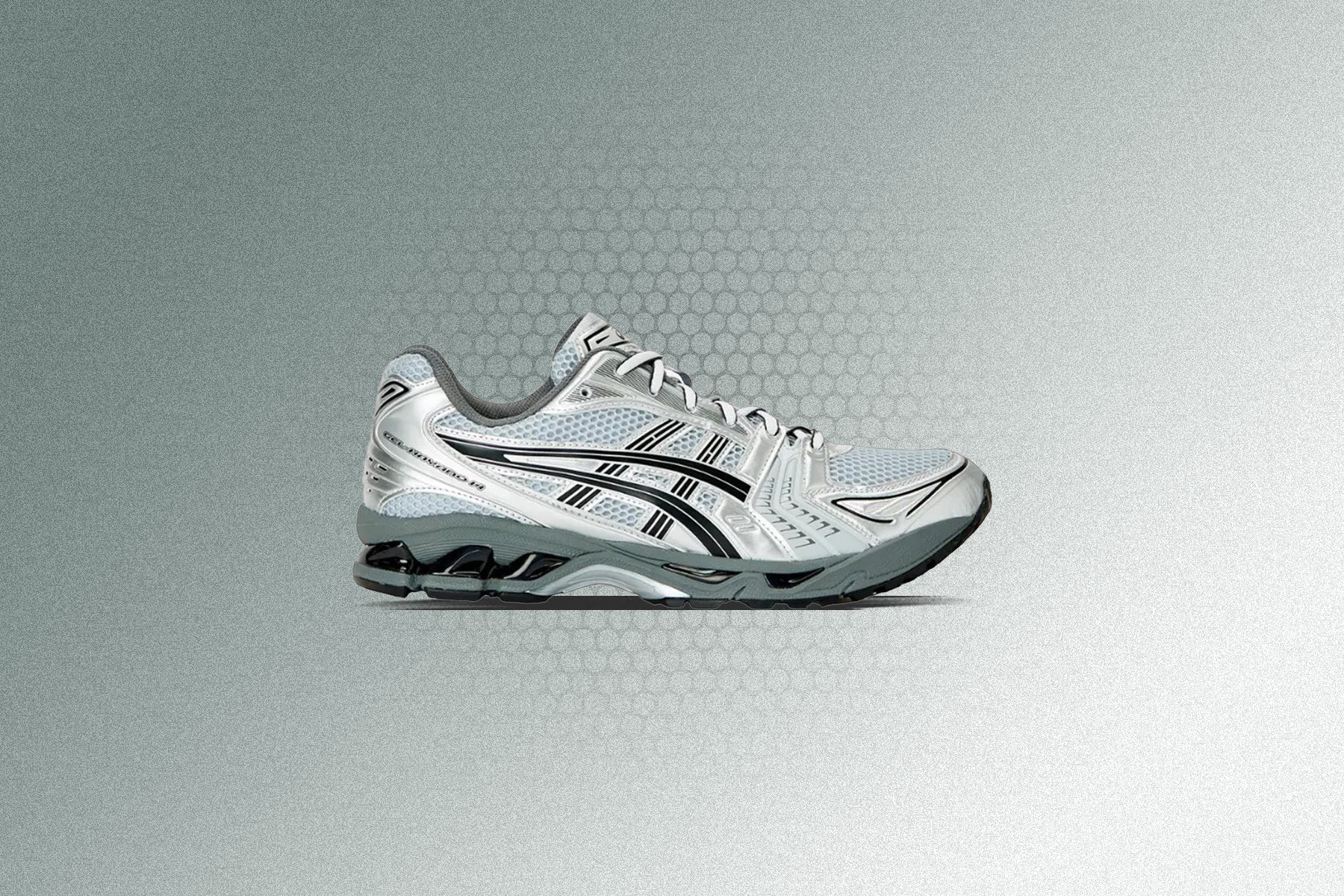 The Asics x Urban Research Gel-Kayano 14 in Pure Silver/Black blends modern performance with a retro aesthetic. It features GEL technology cushioning for all-day comfort and a Trusstic support system for enhanced stability. The breathable webbed mesh upper is paired with synthetic metallic overlays, providing a structured and stylish finish to this versatile sneaker.
