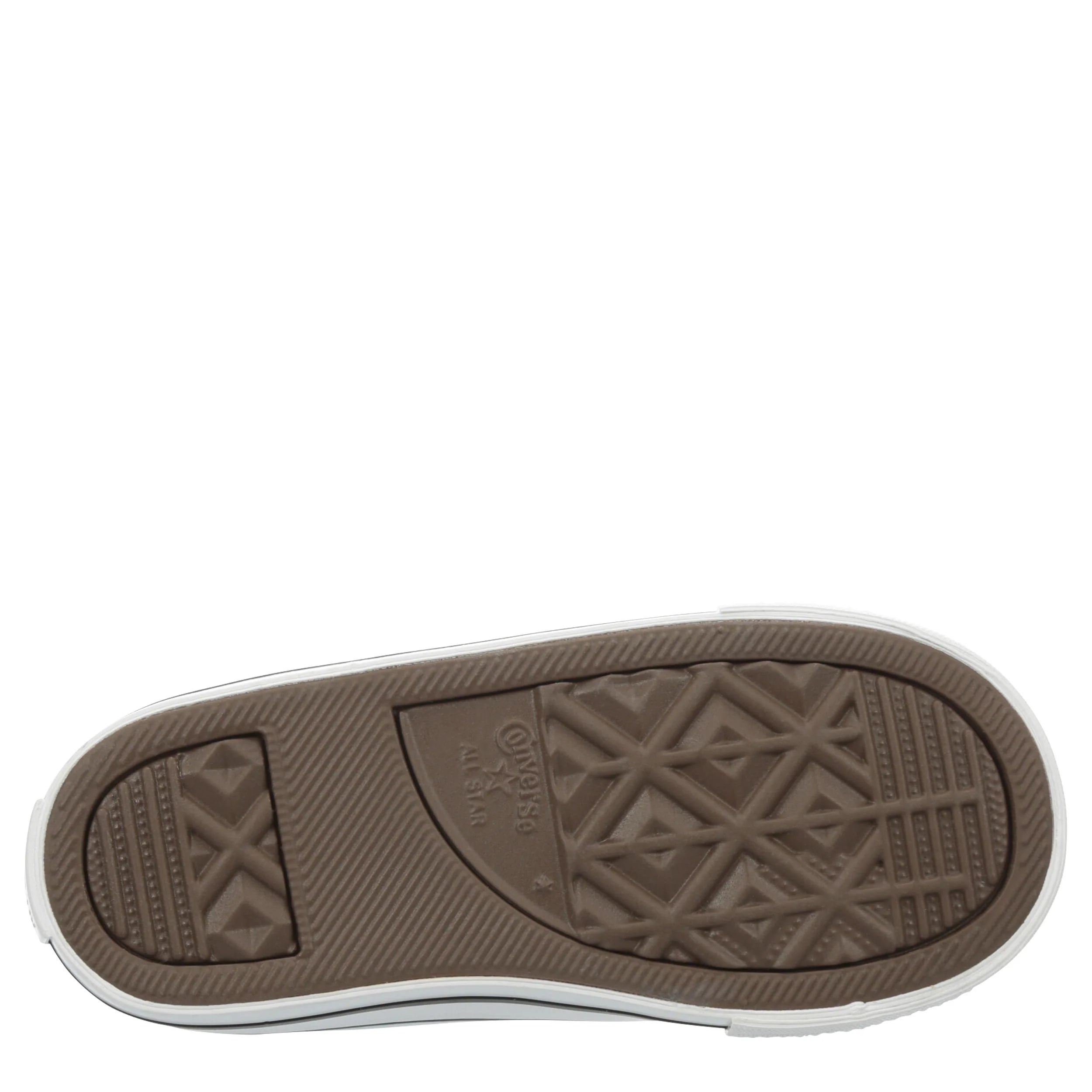 Conquering daycare, with love: These sized-down Chucks go all out with a giant heart-shaped strap. Plus, the fuss-free design and soft foam cushioning make it oh-so-easy to love every step. Heart detail is screenprinted and multi-colored to add a bright pop to their look.