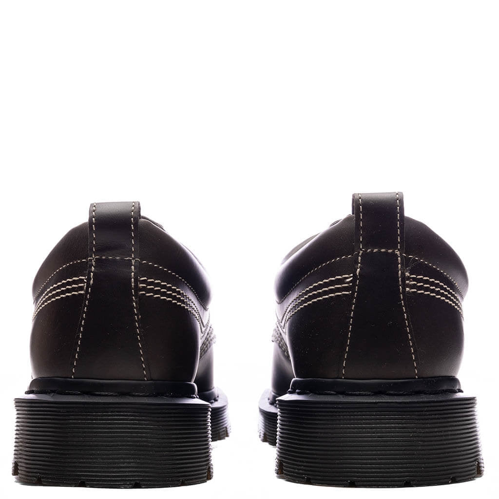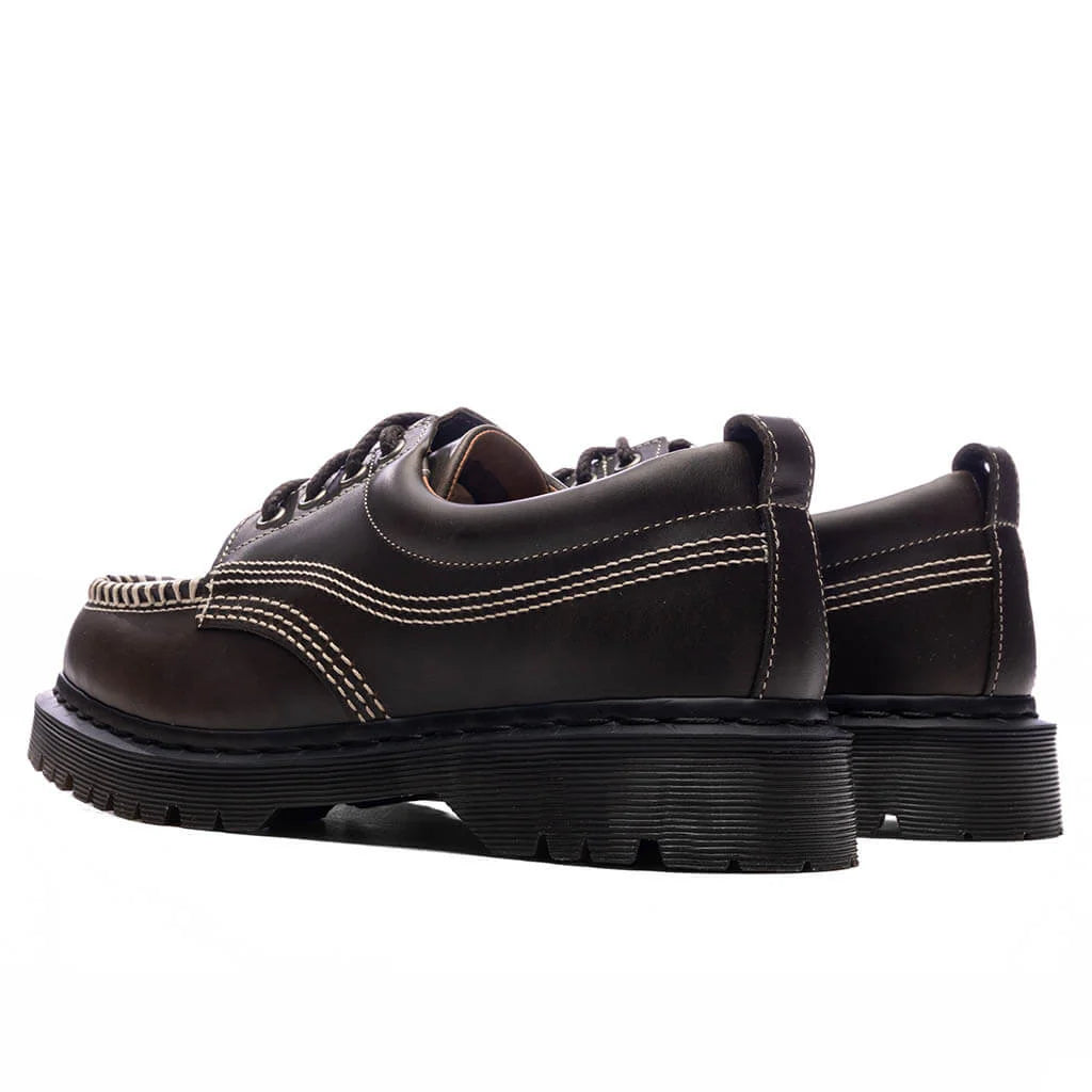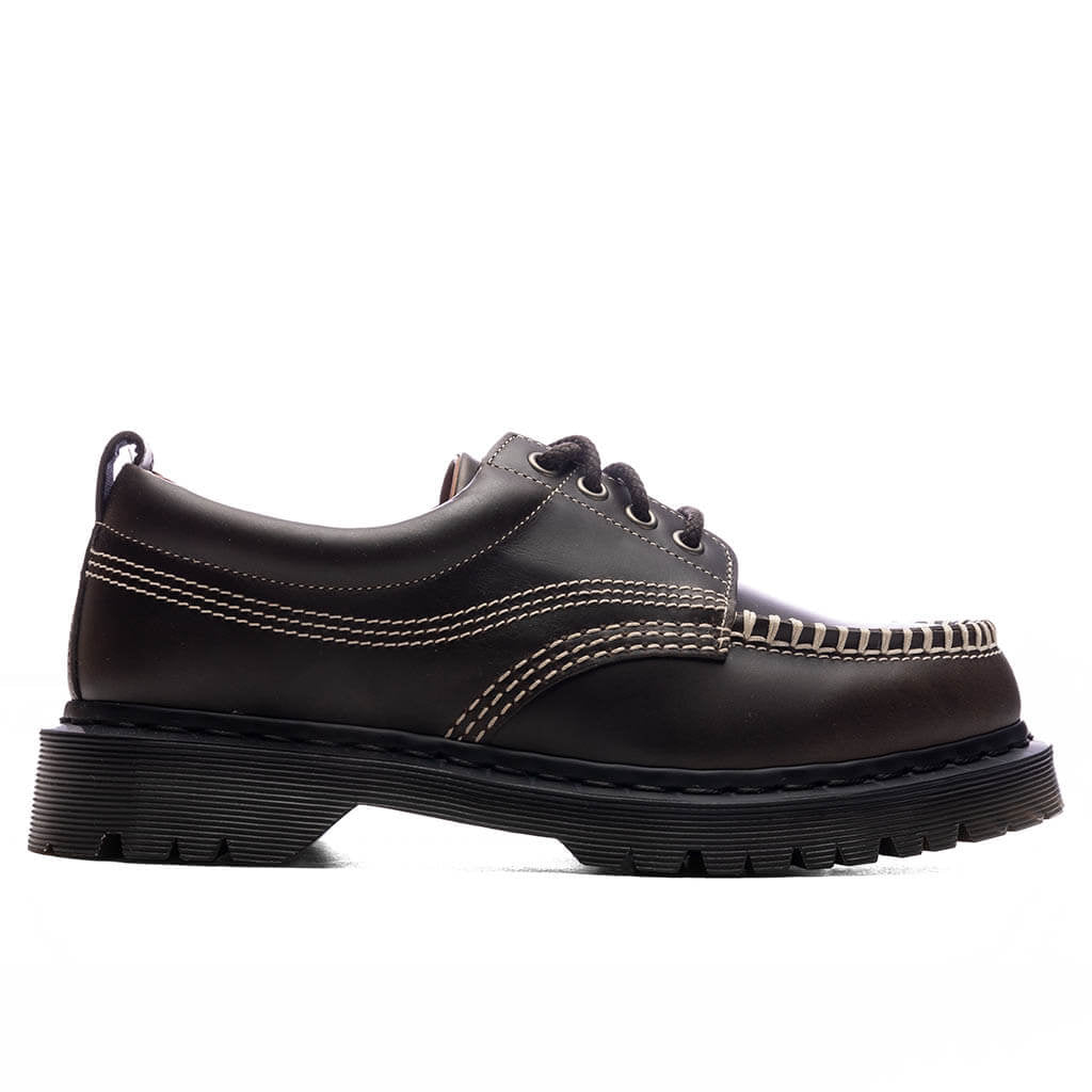 The Dr. Martens Lowell Leather Moc Toe shoes blends contemporary aesthetics with archival workwear designs. The 4-eye shoe is crafted from midnight blue Orleans leather and features a padded collar for enhanced comfort. Highlighted with stitch detailing and finished with a moc toe.The Lowell has a rugged BEN outsole that has undersole tread pattern. The look is finished with secured yellow welt stitching.