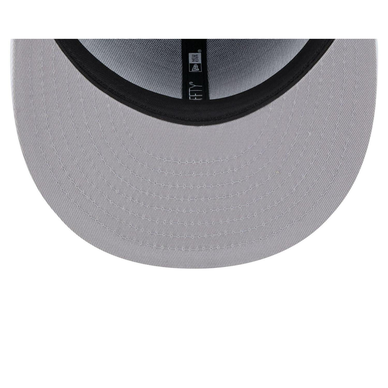 The Chicago White Sox Wave Fill 59FIFTY Fitted Cap features an embroidered wave fill White Sox wordmark at the front panels with a matching MLB Batterman logo at the rear. Additional details include a jacquard crown, a white visor, and a gray undervisor.