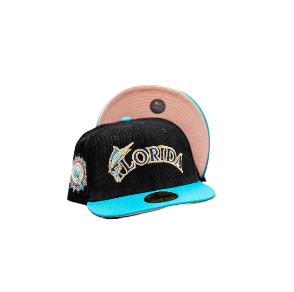 New Era Florida Marlins Corduroy Black Teal Pink 59Fifty 5950 Patch Fitted Hat