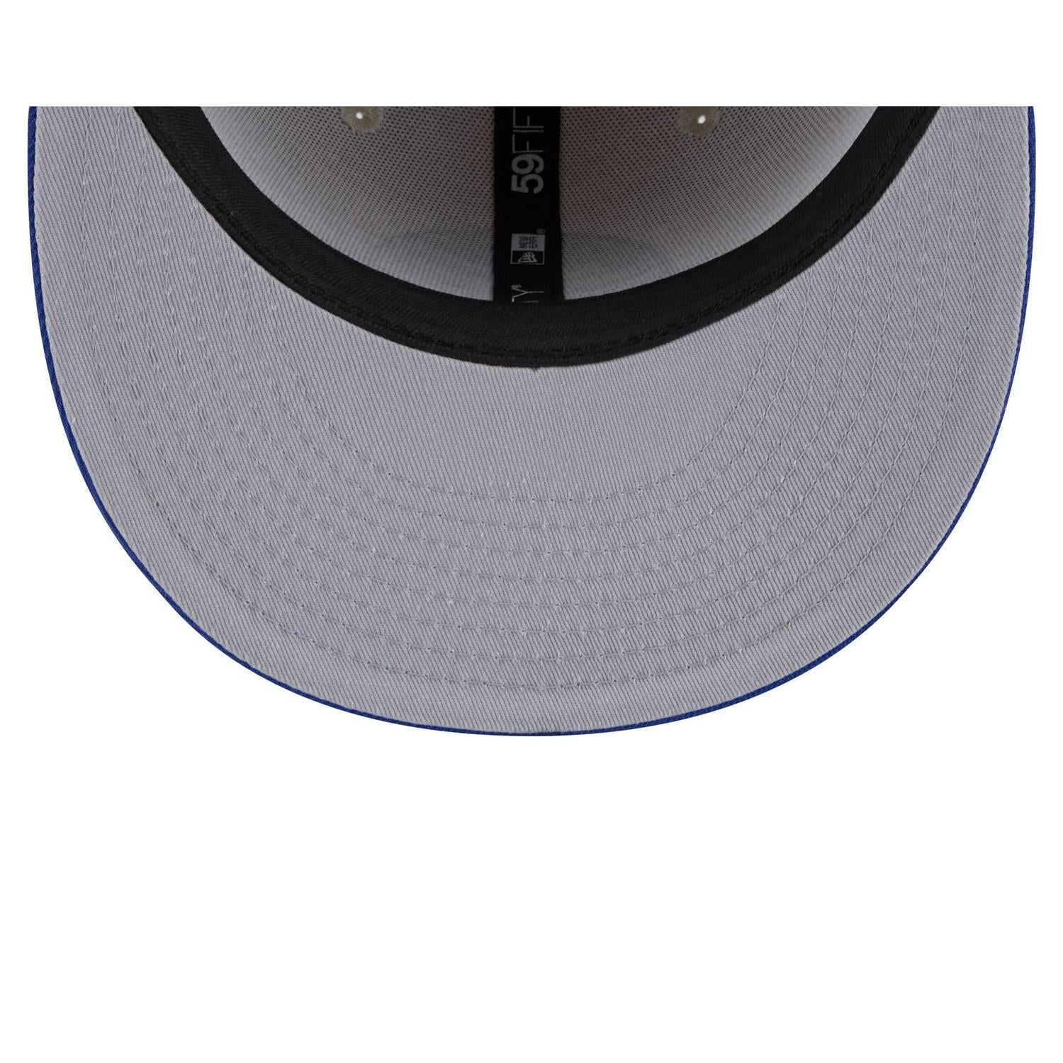 The Golden State Warriors 2025 All-Star Game Fan Pack 59FIFTY Fitted Cap features an embroidered Warriors logo at the front panels with a matching NBA Logoman at the rear. Additional details include a sneaker patch at the right-wear side and a gray undervisor.