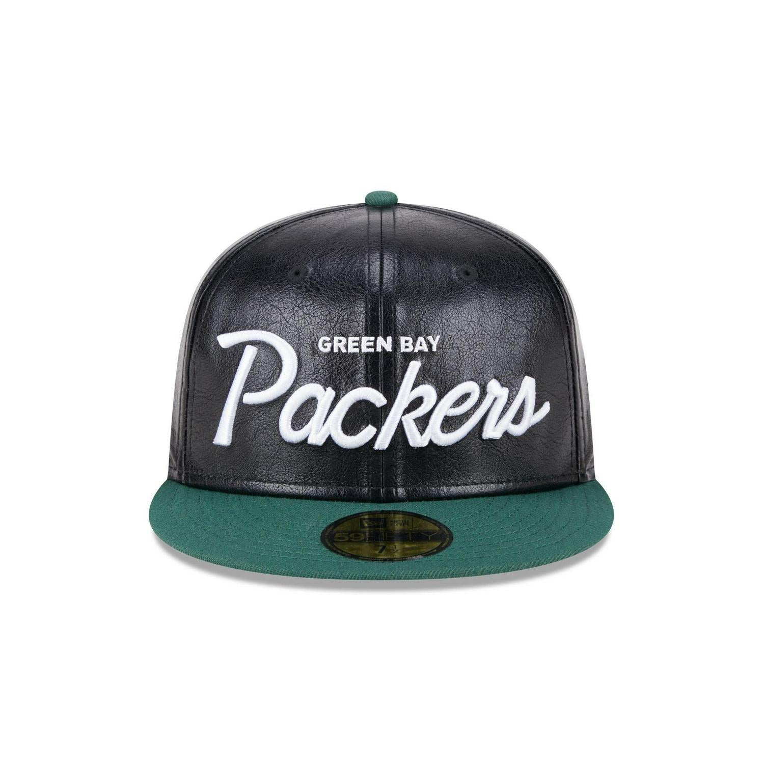 New Era Green Bay Packers Faux Leather Crown Black Green 59Fifty 5950 Fitted Hat