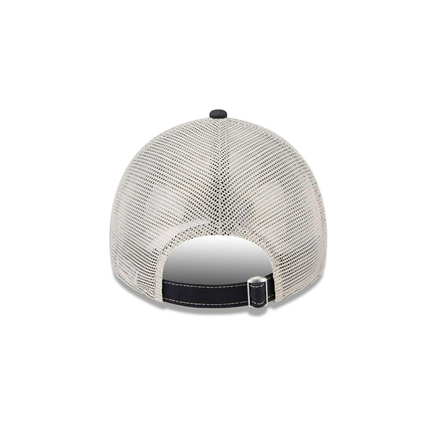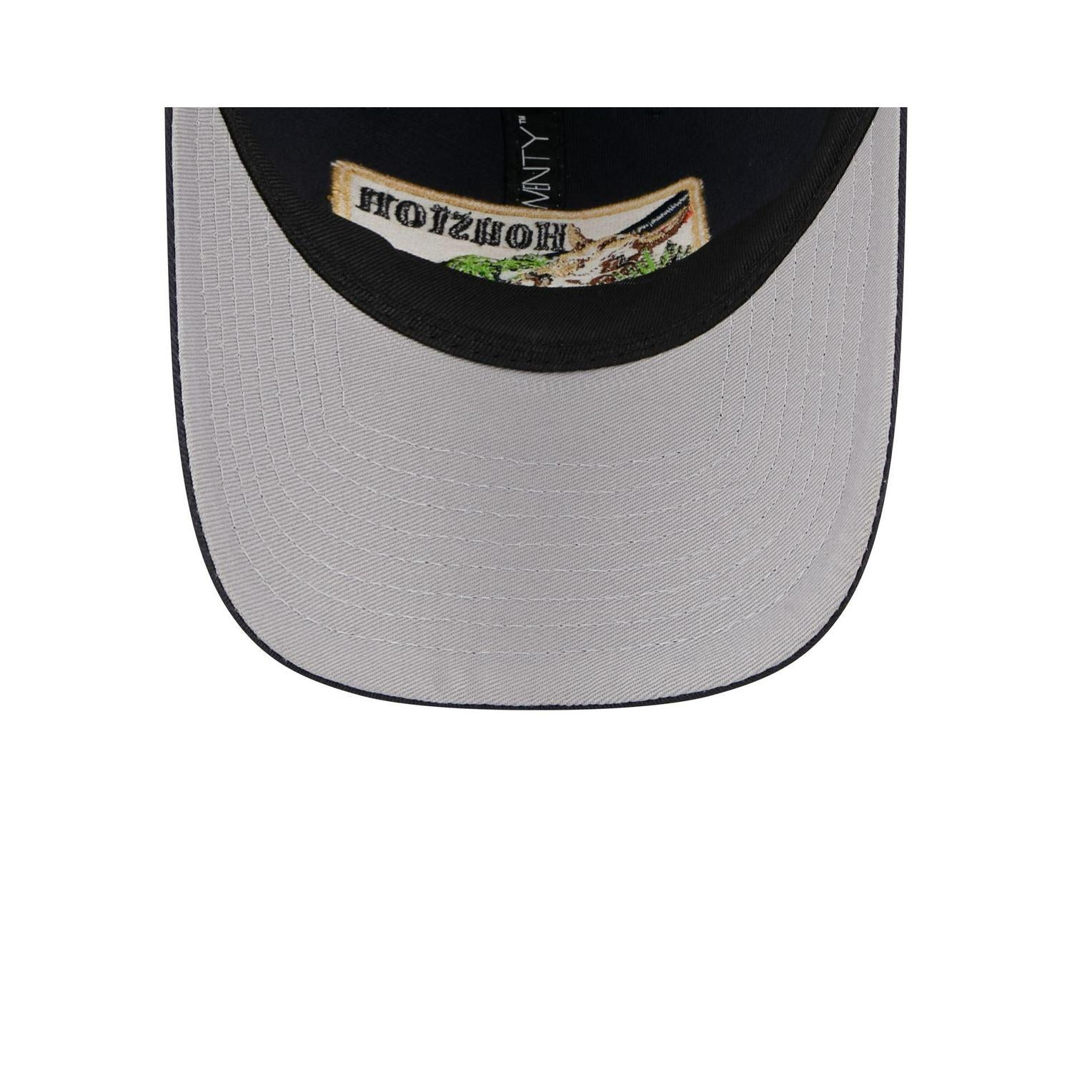 The Houston Astros State Souvenir 9TWENTY Trucker features an embroidered Astros state inspired patch at the front panels with a team logo at the right-wear side, a gray undervisor, and an adjustable D-Ring closure at the rear.