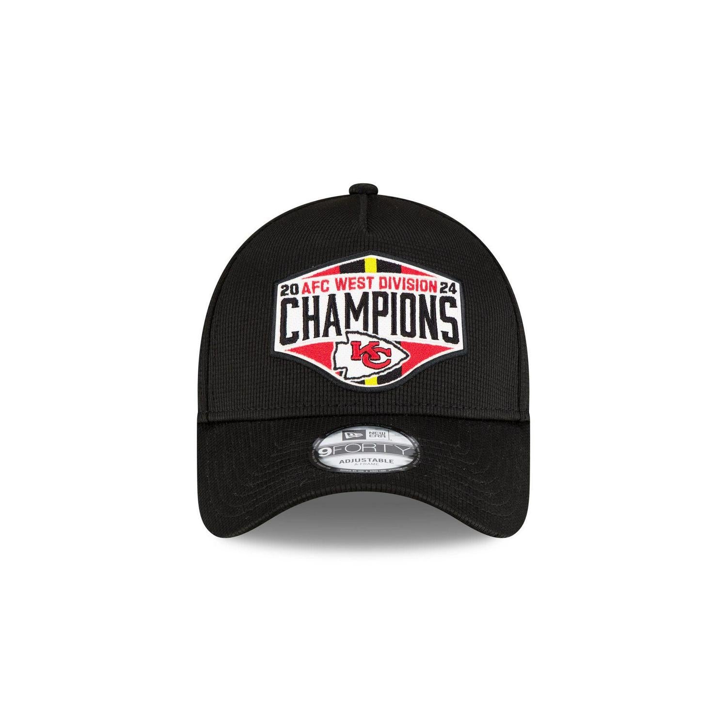 Commemorate your team's regular season performance with the Kansas City Chiefs 2024 Division Champions Locker Room 9FORTY A-Frame Snapback featuring an embroidered Chiefs AFC West Division Champions logo at the front panels, a gray undervisor, and a snapback closure at the rear.