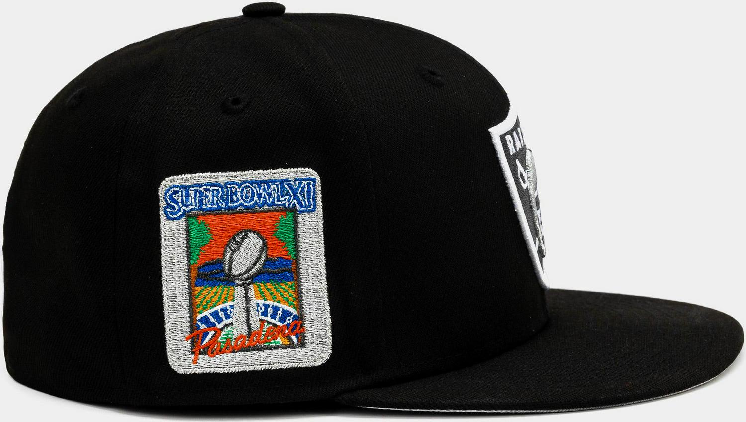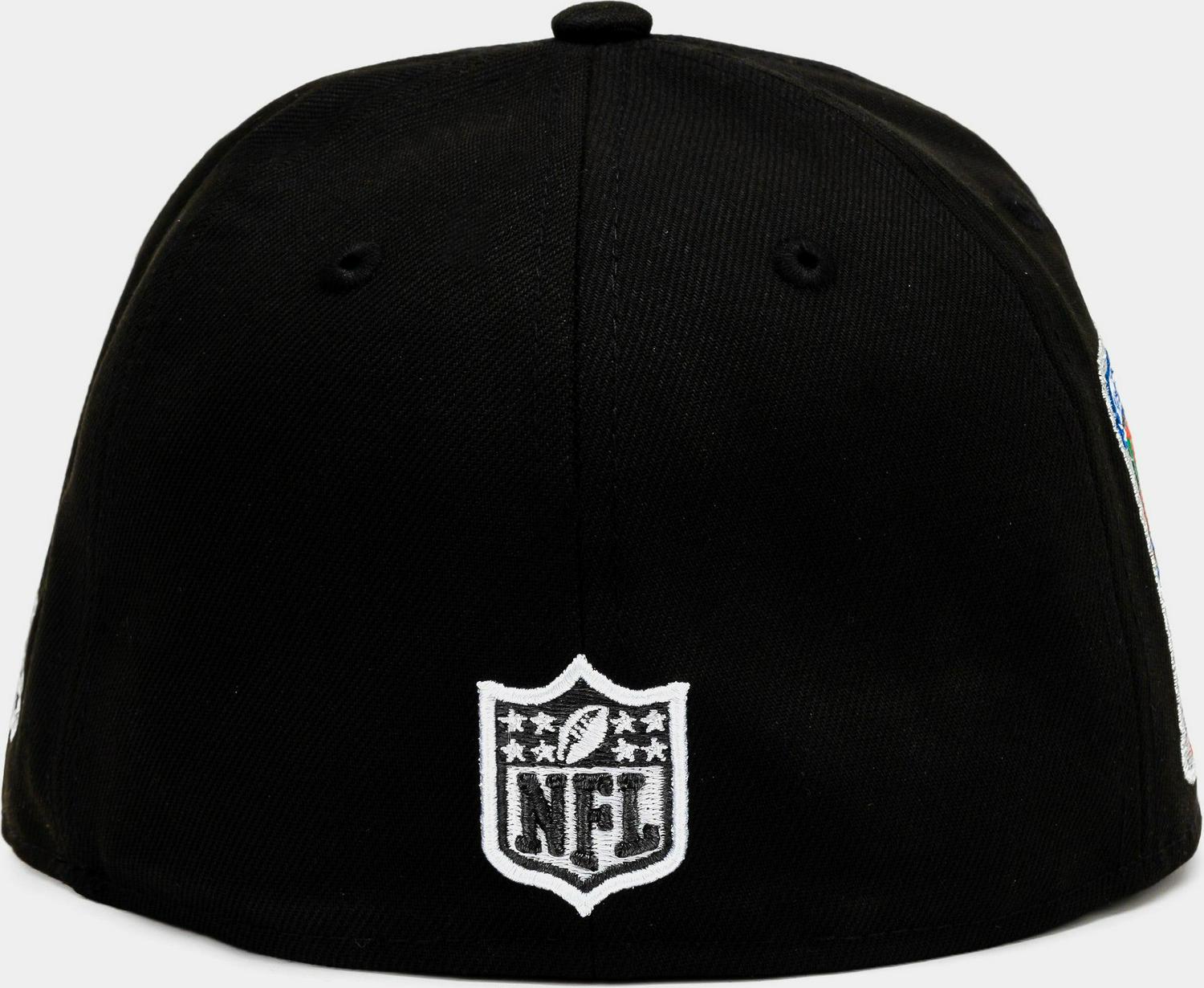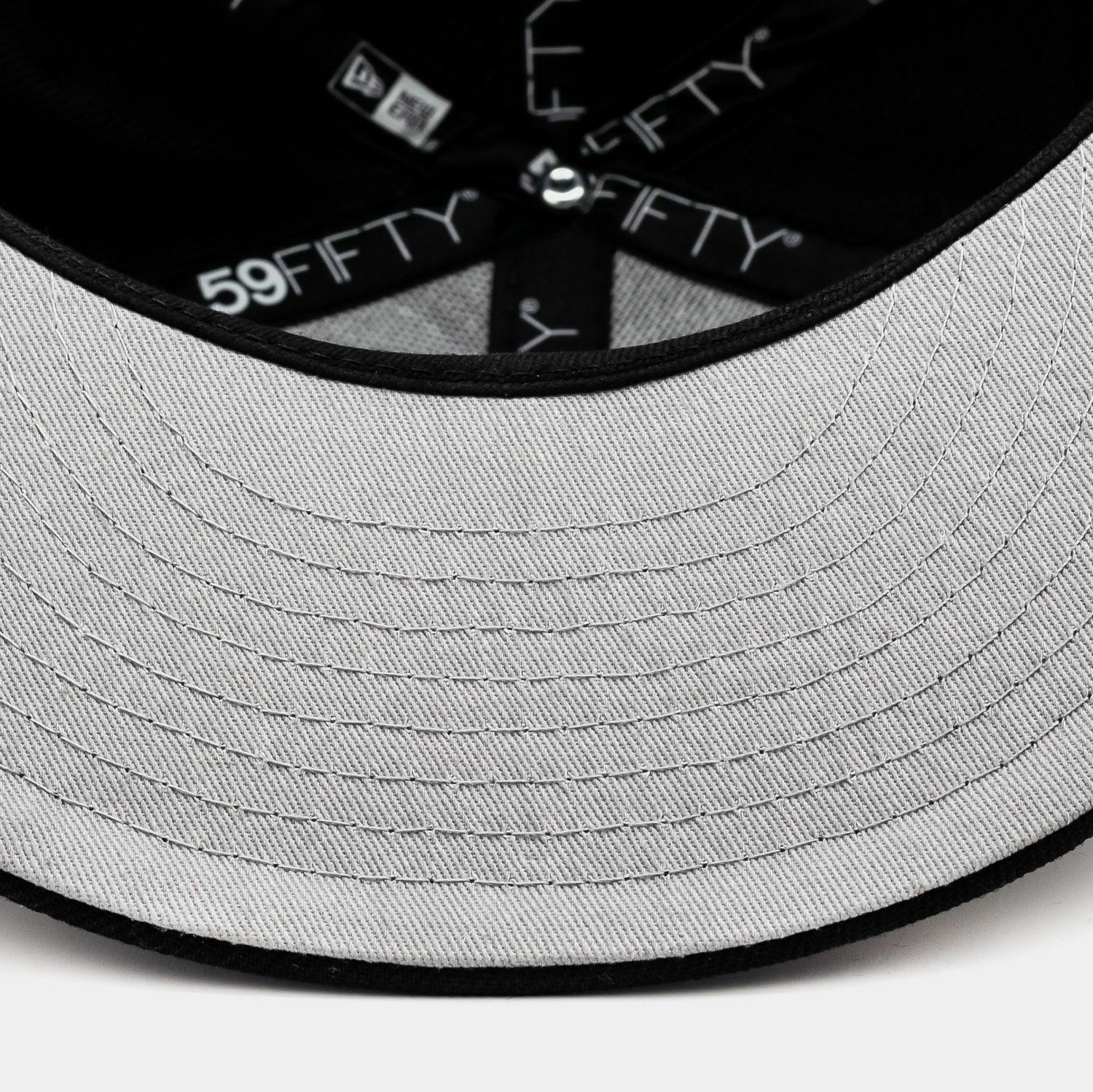 New Era Collection drop includes the Las Vegas Raiders 59Fifty Fitted Cap. This exclusive design features an all-over black crown with embroidered Raiders logo at the front panels and grey underbill.