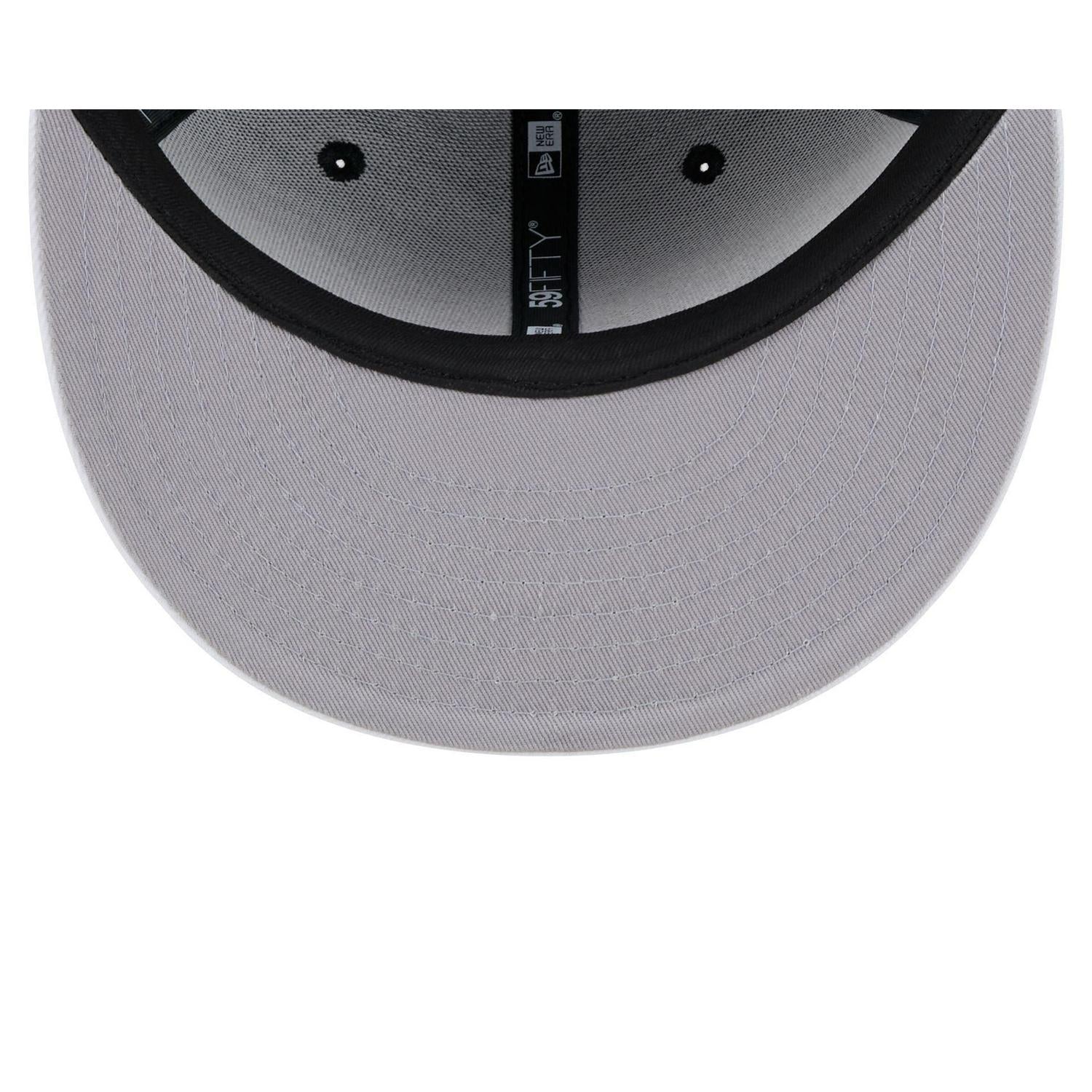 The Montreal Expos Wave Fill 59FIFTY Fitted Cap features an embroidered wave fill Expos wordmark at the front panels with a matching MLB Batterman logo at the rear. Additional details include a jacquard crown, a white visor, and a gray undervisor.
