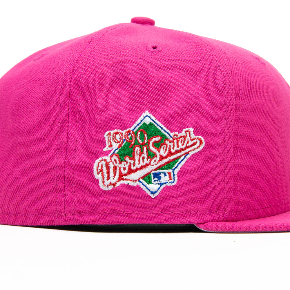New Era Cincinnati Reds '90 WS Beetroot Pink White 59Fifty 5950 Patch Fitted Cap