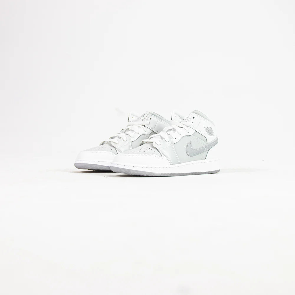 Nike Air Jordan 1 Mid SE BG Summit White Metallic Silver Grey Sneaker Shoe Trainer