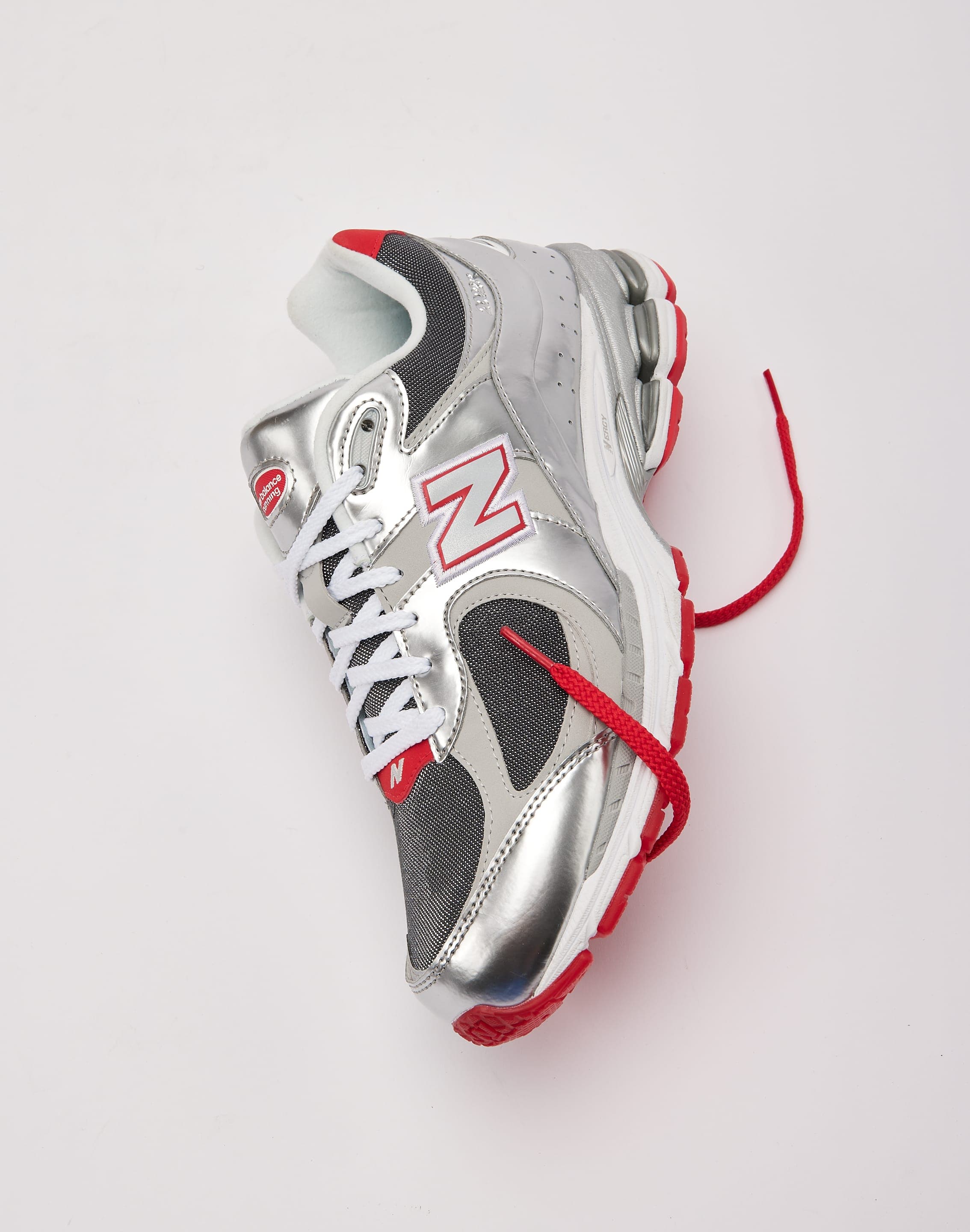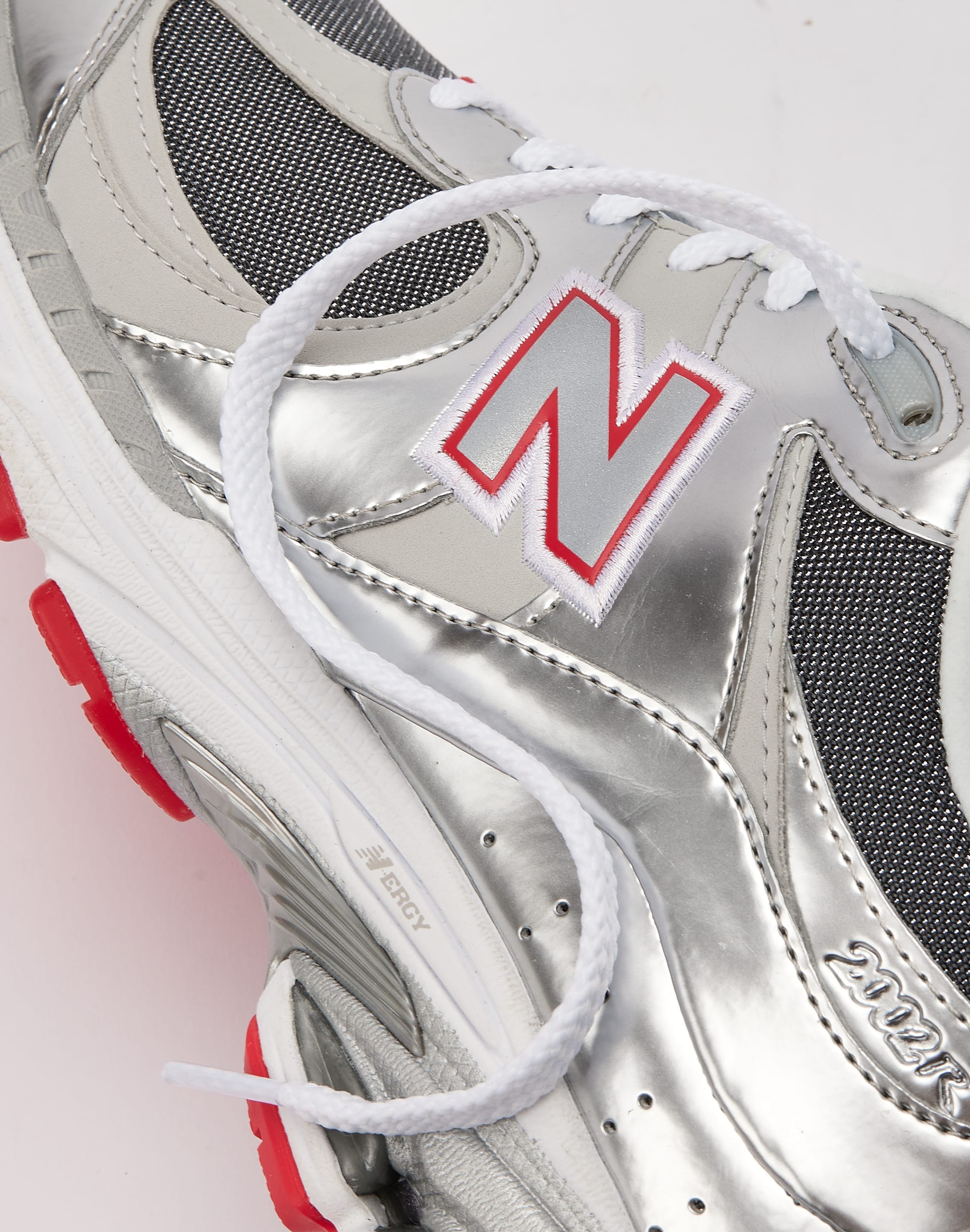 Get in the holiday spirit with the DTLR-exclusive New Balance 2002R "Tinsel." This festive flavor features a full "Metallic Silver" upper with bright red and white hits.