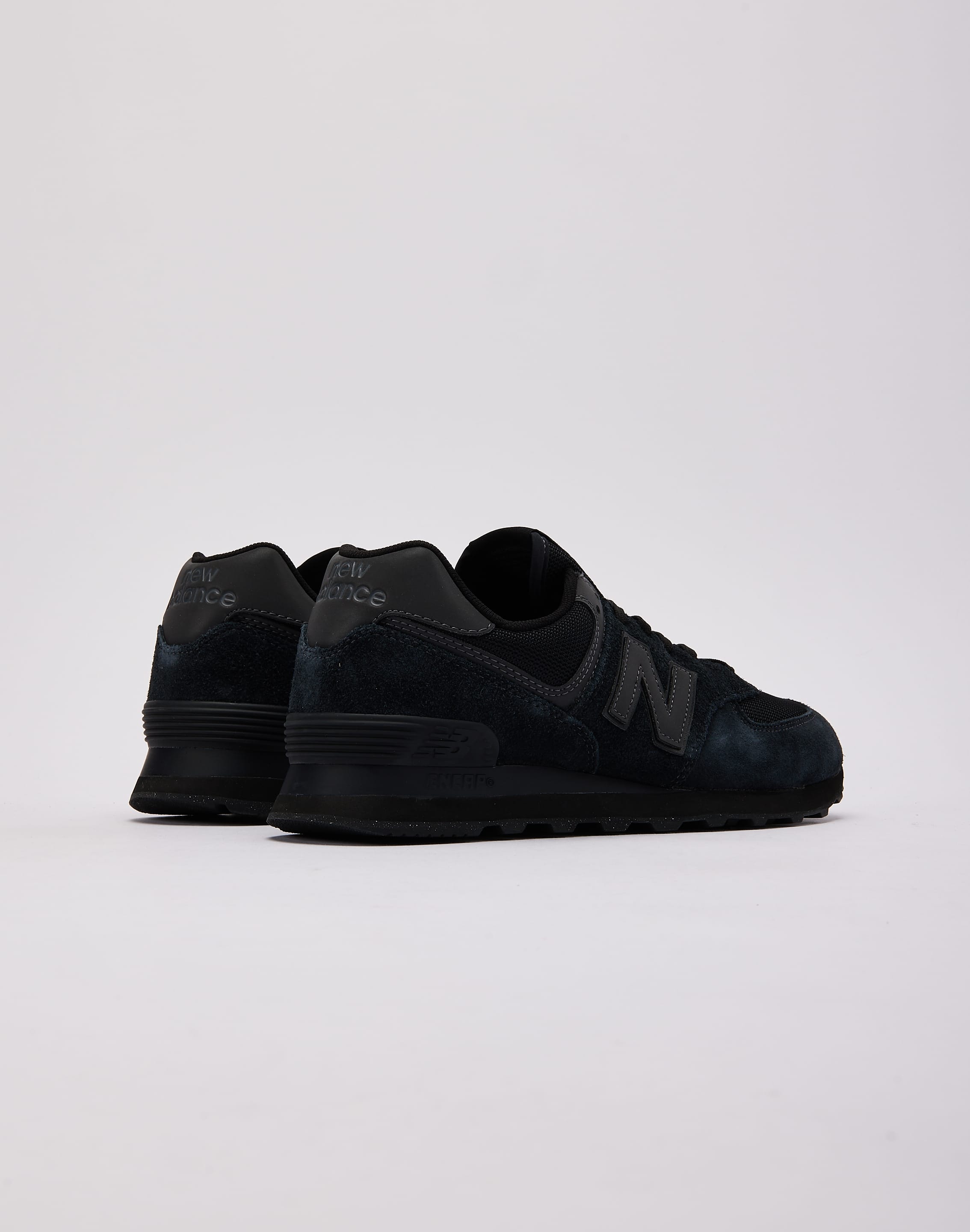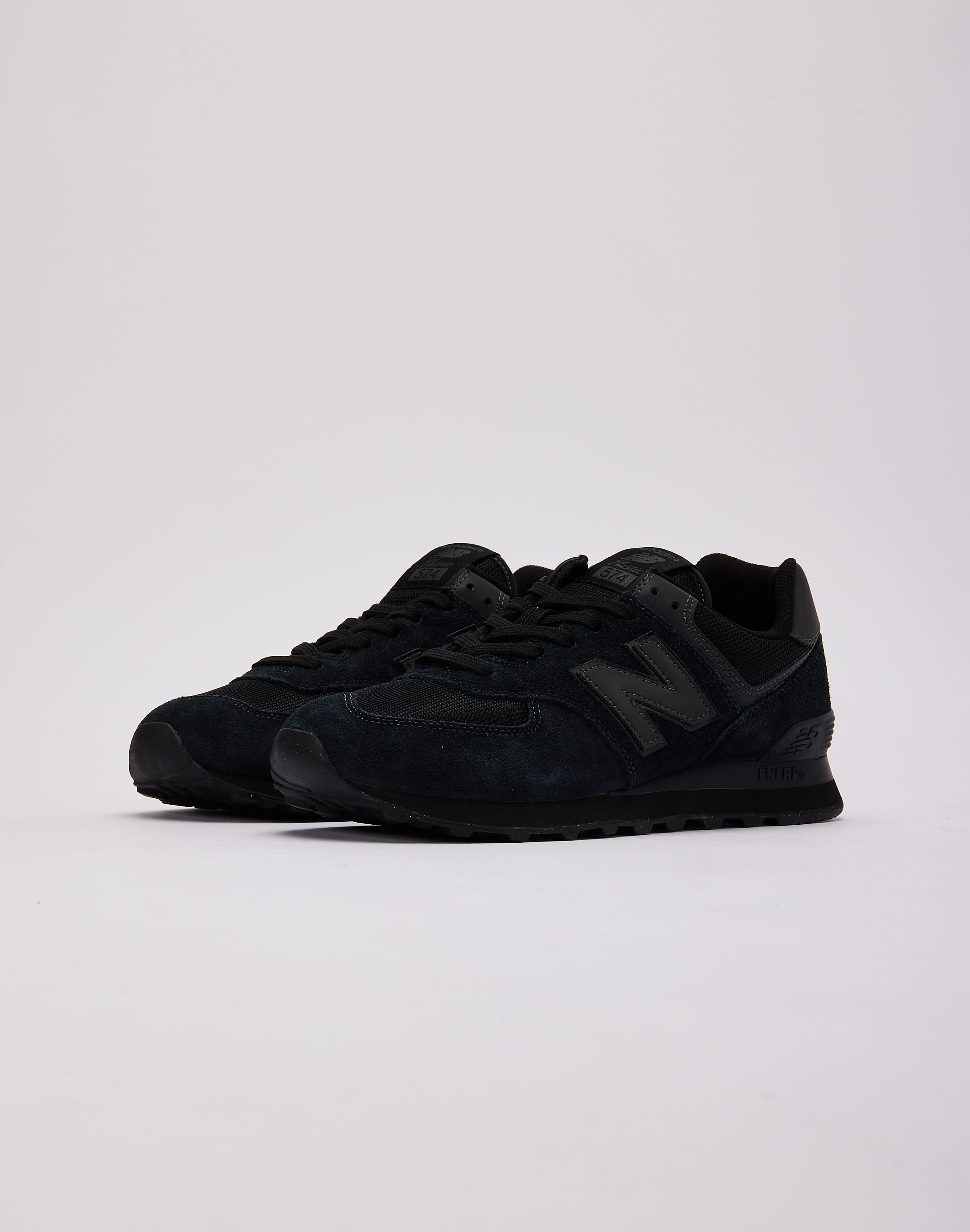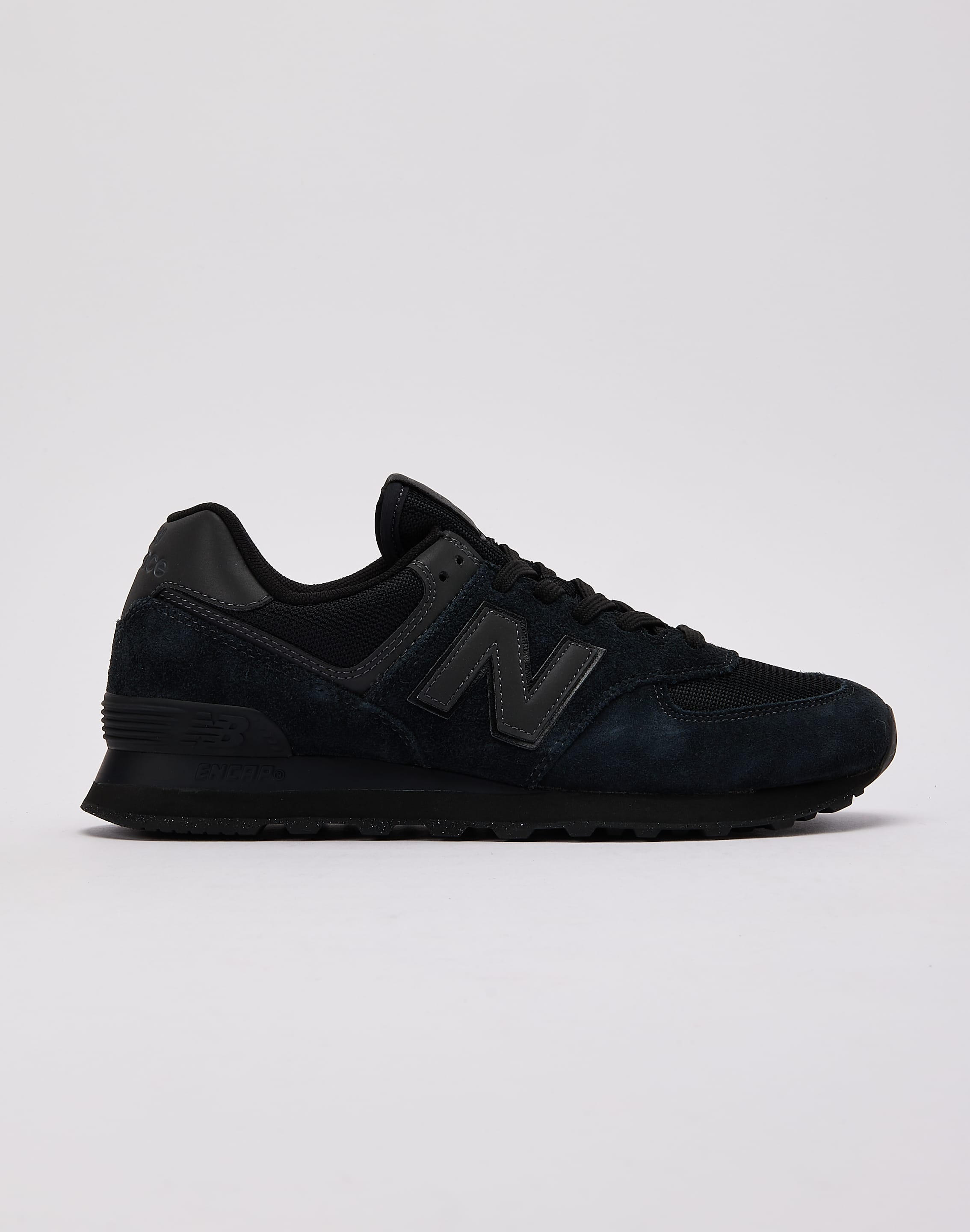 ‘The most New Balance shoe ever’ says it all, right? No, actually. The New Balance 574 Men's "Black" Shoe might be our unlikeliest icon. The 574 was built to be a reliable shoe that could do a lot of different things well rather than as a platform for revolutionary technology, or as a premium materials showcase. This unassuming, unpretentious versatility is exactly what launched the 574 into the ranks of all-time greats. As hybrid road/trail design built on a wider last than the previous generation’s narrow racing silhouettes, the 574 offered a uniquely versatile mix of new, different, uncomplicated, rugged, durable, and comfortable that was adopted as a closet staple across the globe. That’s why today, the 574 is synonymous with the boundary defying New Balance style, and worn by anyone.