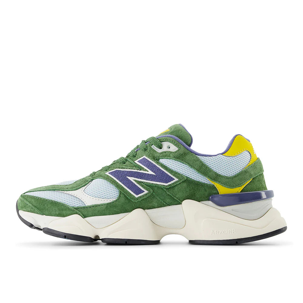 The new 9060 reinterprets familiar elements sourced from classic 99X series models with a warped sensibility inspired by the proudly futuristic, visible tech aesthetic of the Y2K era. Sway bars, taken from the 990, are expanded and utilized throughout the entire upper for a sense of visible motion, while wavy lines and scaled up proportions on a sculpted pod midsole place an exaggerated emphasis on the familiar cushioning platforms of ABZORB and SBS.