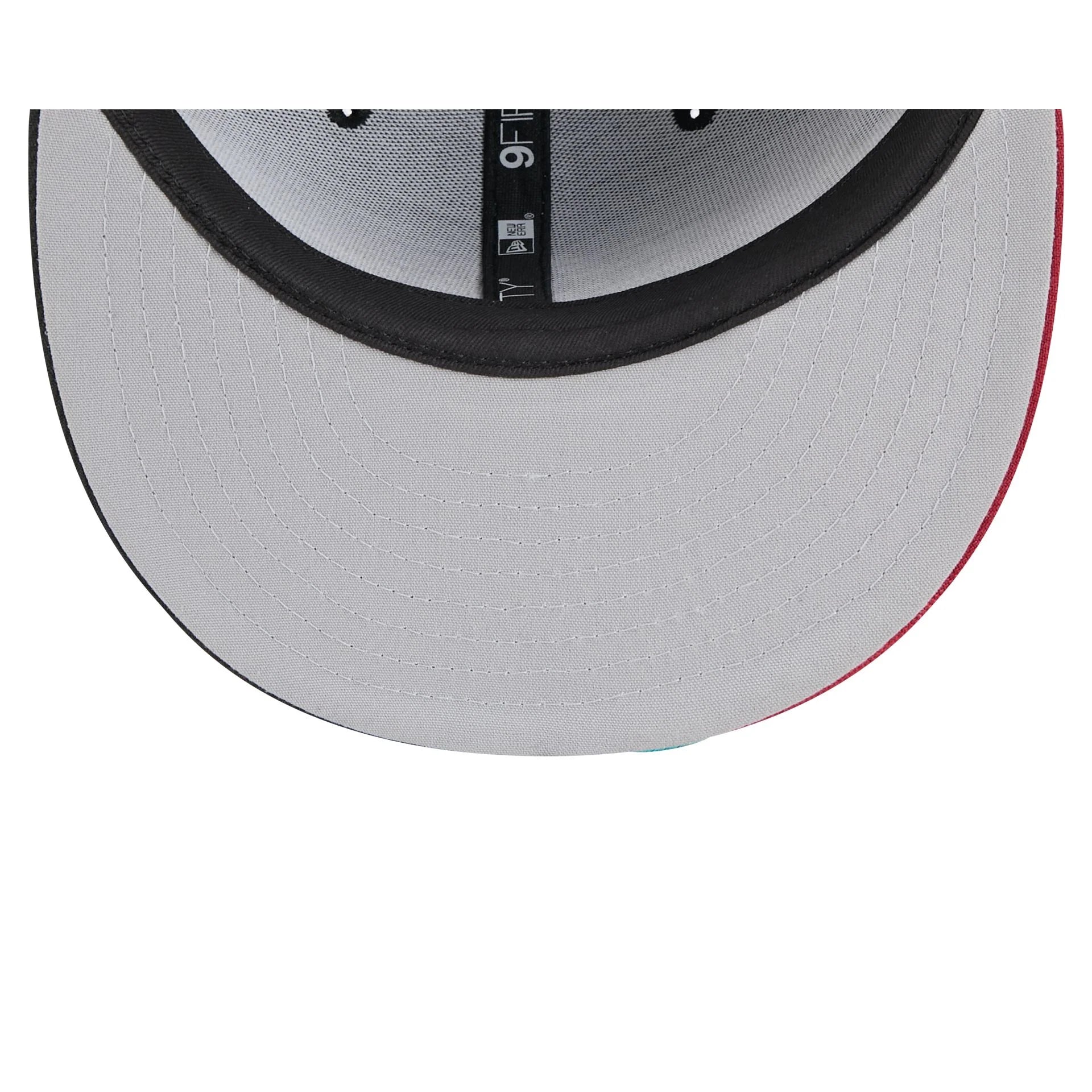 The Arizona Diamondbacks Corbin Carroll 9FIFTY Snapback features an embroidered Diamondbacks logo at the front panels with the player's name and number at the right-wear side. Additional details include a snapback closure at the rear and a gray undervisor.
