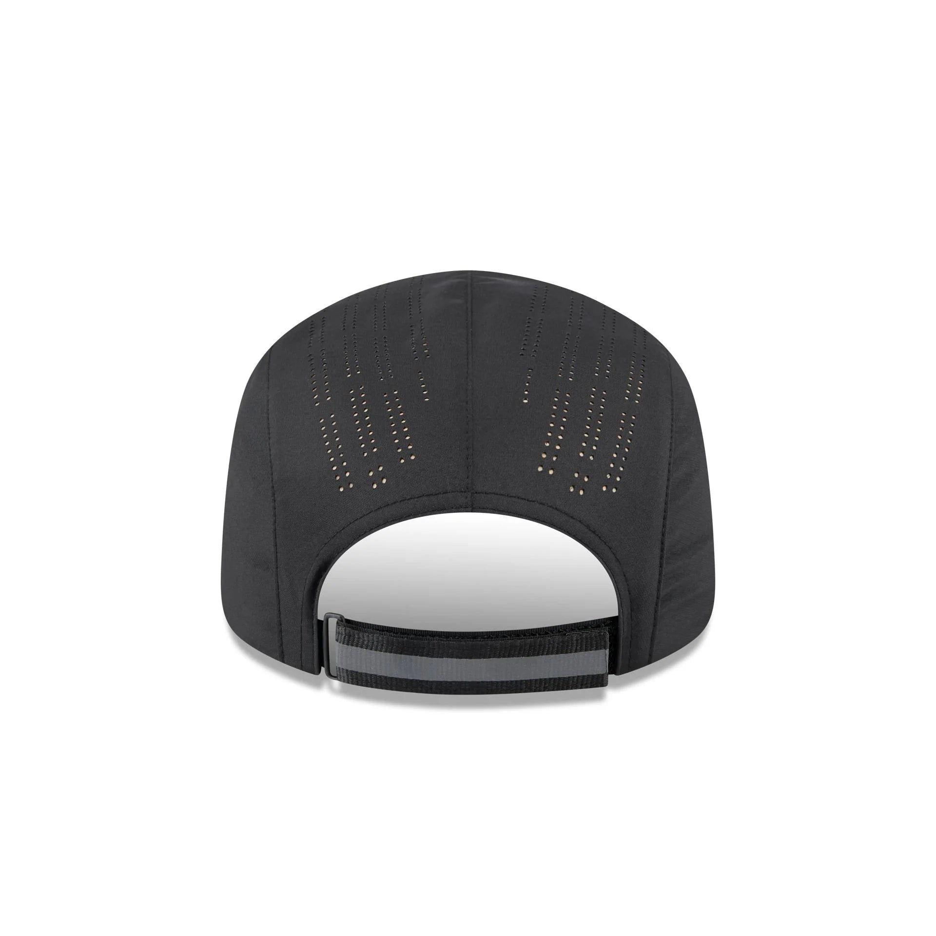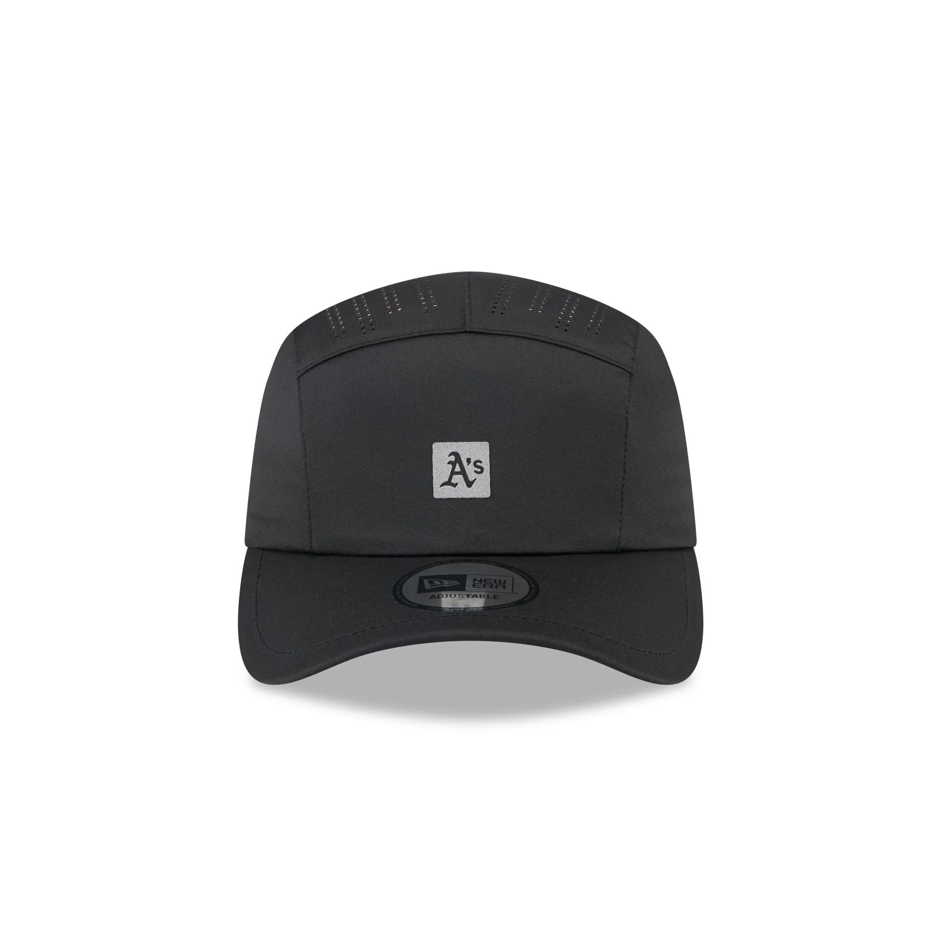 The Athletics Black Reflect Runner Adjustable Cap features a reflective screen-printed Athletics logo at the front panels with an adjustable hook and loop strap at the rear.