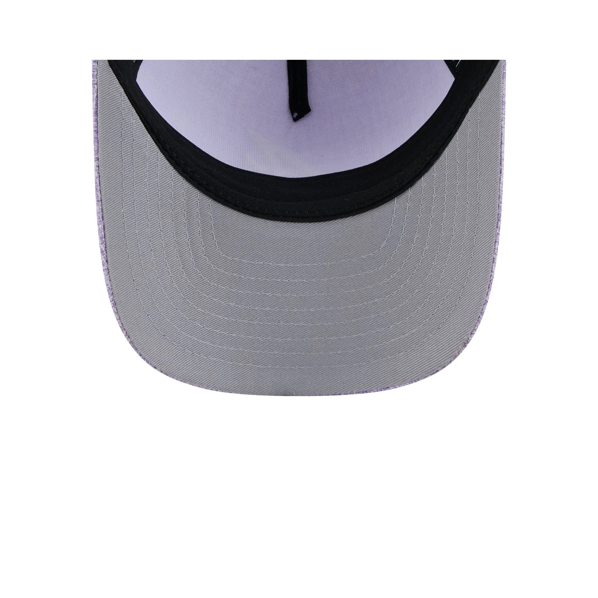 The Atlanta Braves Cotton Weave Purple 9FORTY M-Crown A-Frame Snapback features an embroidered Braves logo at the front panels with an adjustable snapback closure at the rear and a gray undervisor.
