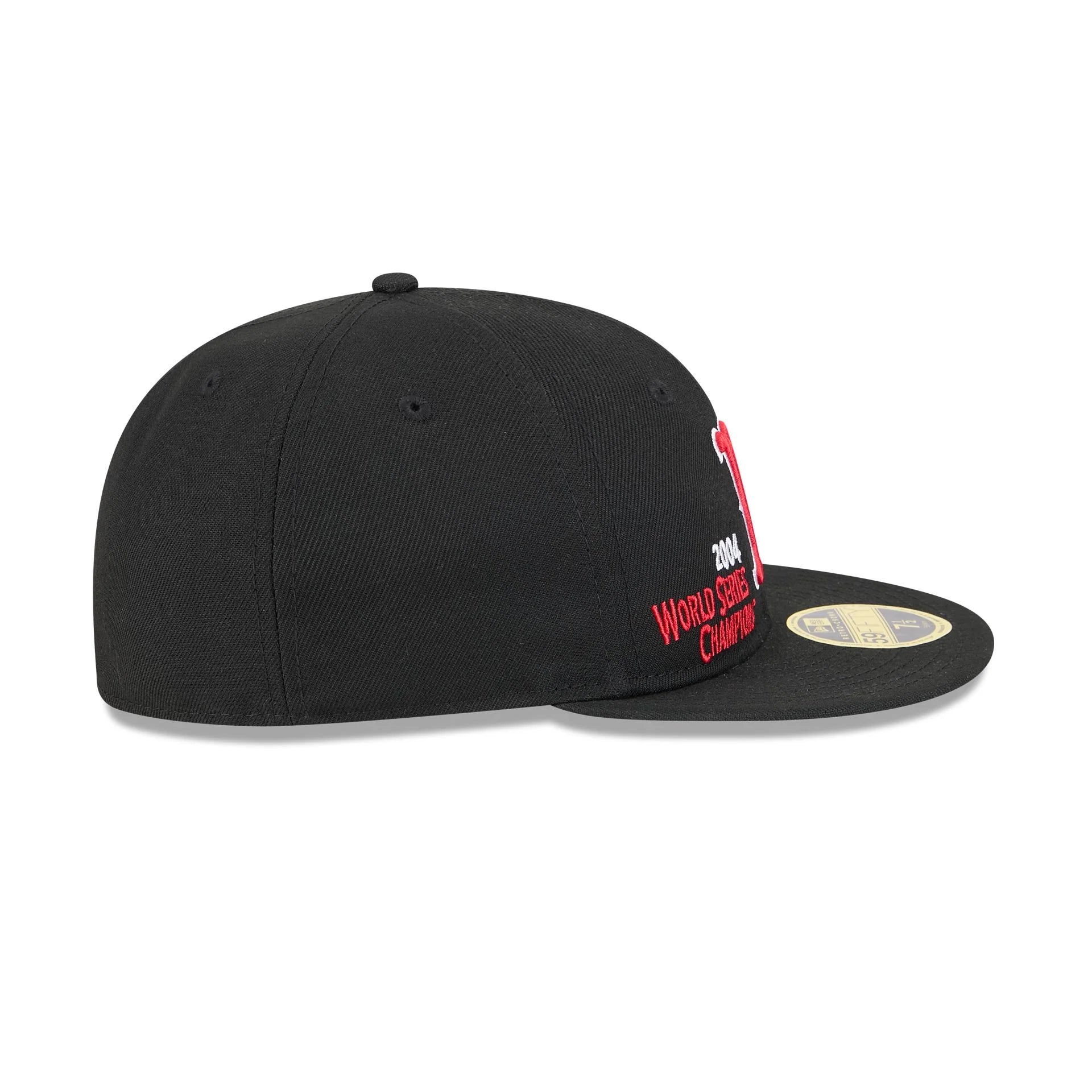 The Boston Red Sox Championship Pack Retro Crown 59FIFTY Fitted Cap features an embroidered Red Sox logo with a 2004 World Series Champions wordmark at patch at the front panels. Additional details include a matching MLB Batterman logo at the rear with a green undervisor.