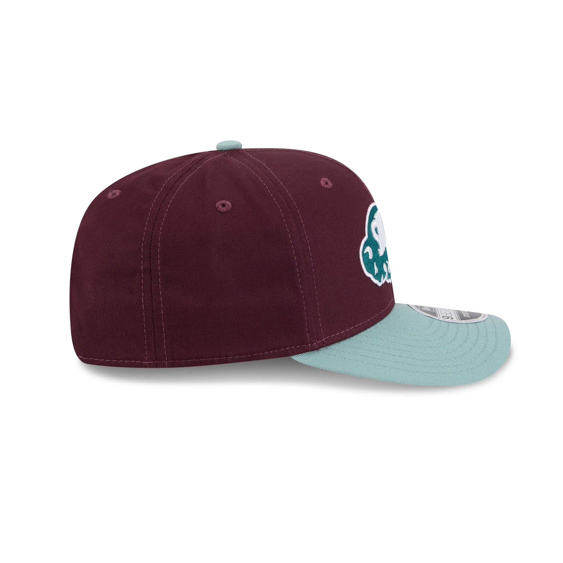 The Buffalo Sabres Maroon 9SEVENTY Stretch-Snap features an embroidered Sabres logo at the front panels with a snapback closure at the rear and a teal undervisor.