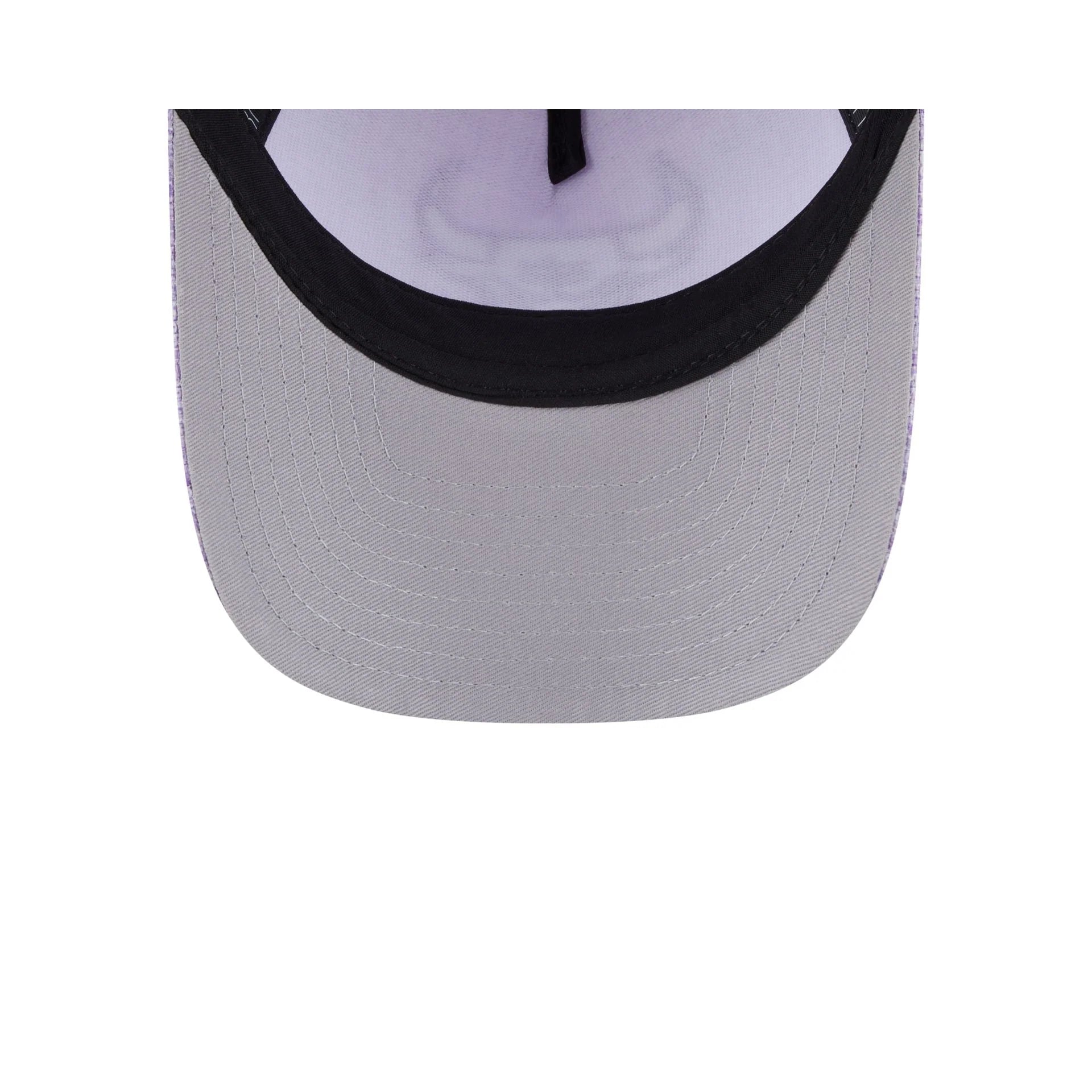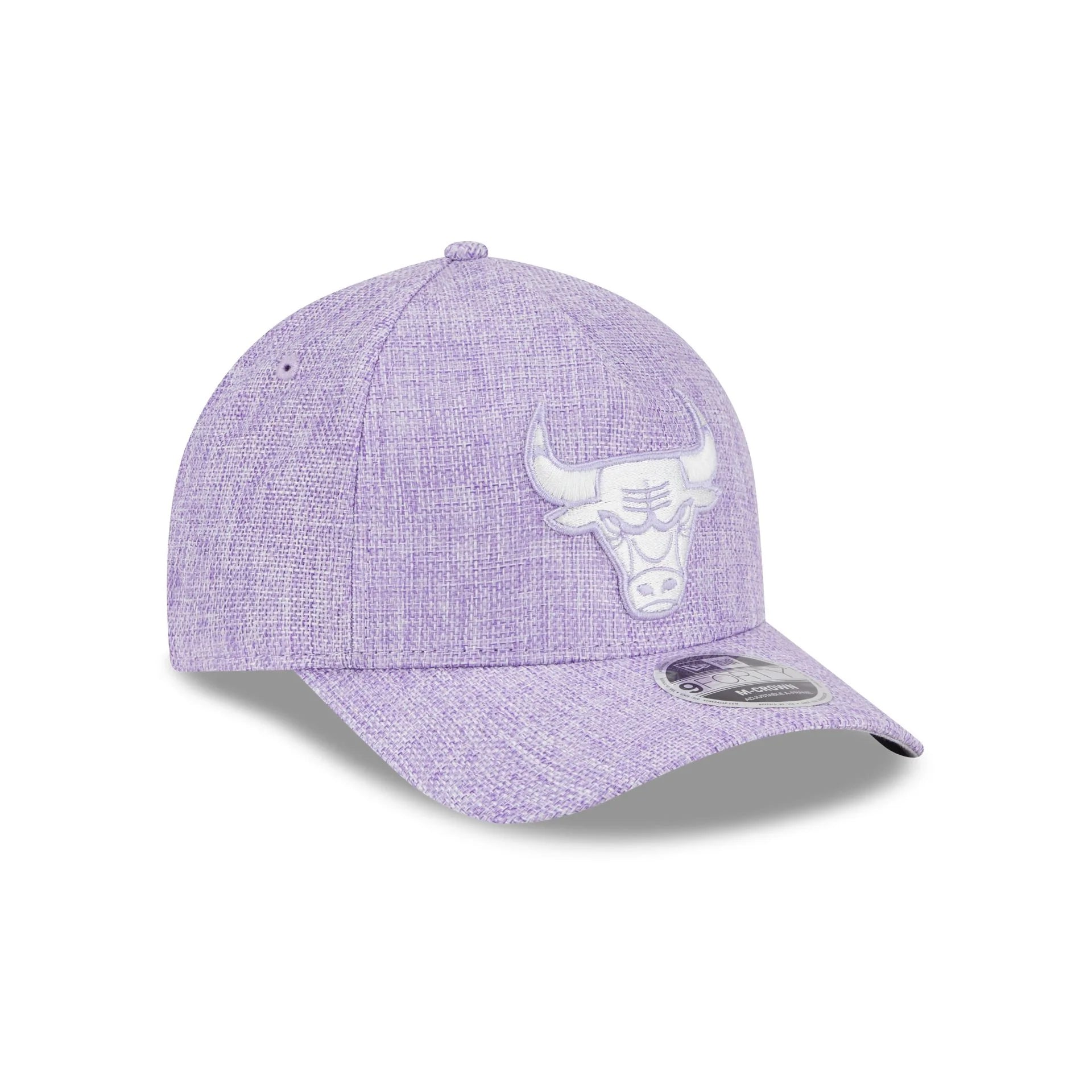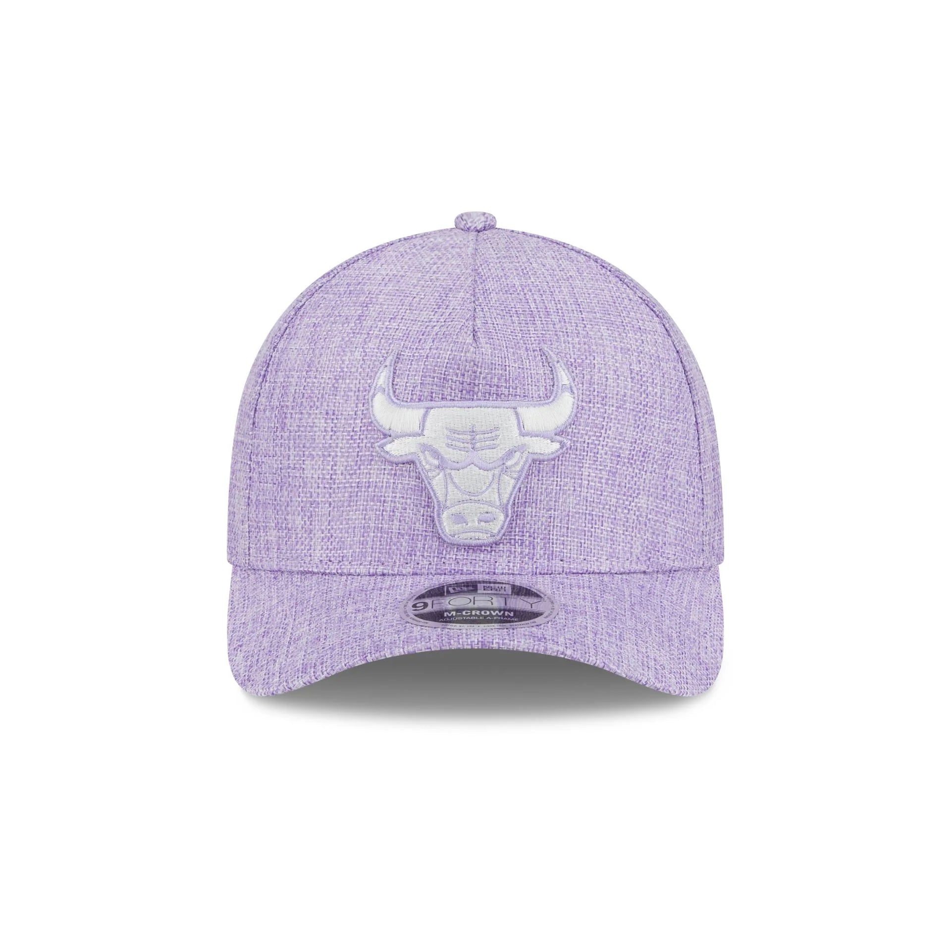 The Chicago Bulls Cotton Weave Purple 9FORTY M-Crown A-Frame Snapback features an embroidered Bulls logo at the front panels with an adjustable snapback closure at the rear and a gray undervisor.