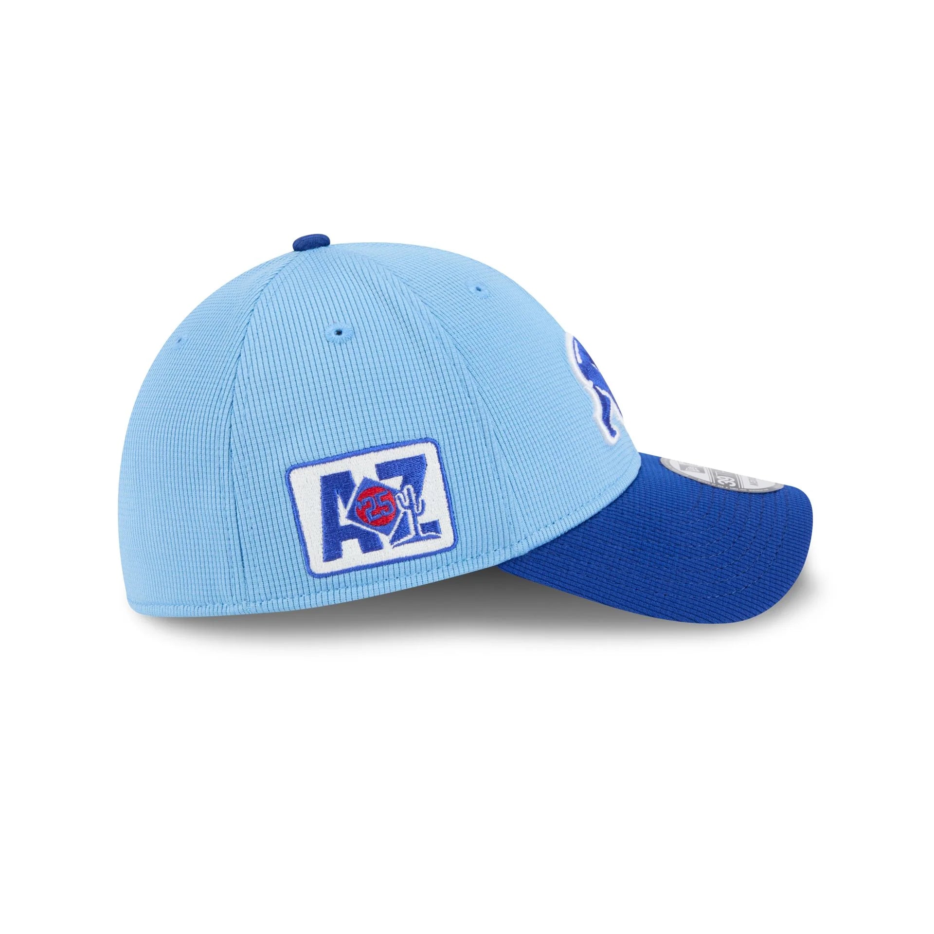 The Chicago Cubs 2025 Spring Training 39THIRTY Stretch Fit Cap features an embroidered Cubs logo at the front panels with a matching team wordmark at the rear. Additional details include a pivot knit fabrication with a 2025 Spring Training patch at the right-wear side and a black undervisor.