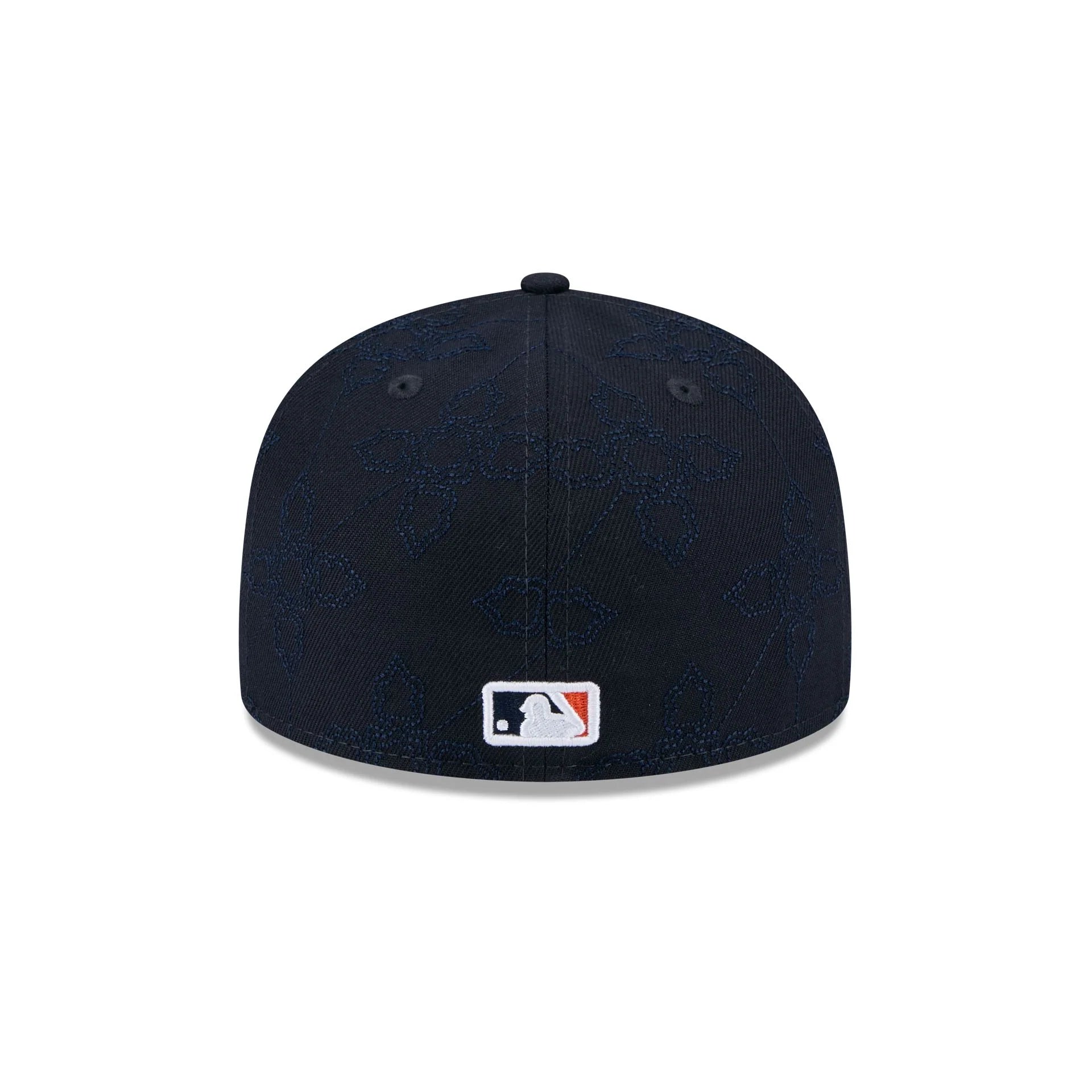 The Houston Astros Color Pattern 59FIFTY Fitted Cap features an embroidered Astros logo at the front panels against a floral patterning throughout. Additional details include a matching MLB Batterman logo at the rear and a gray undervisor.