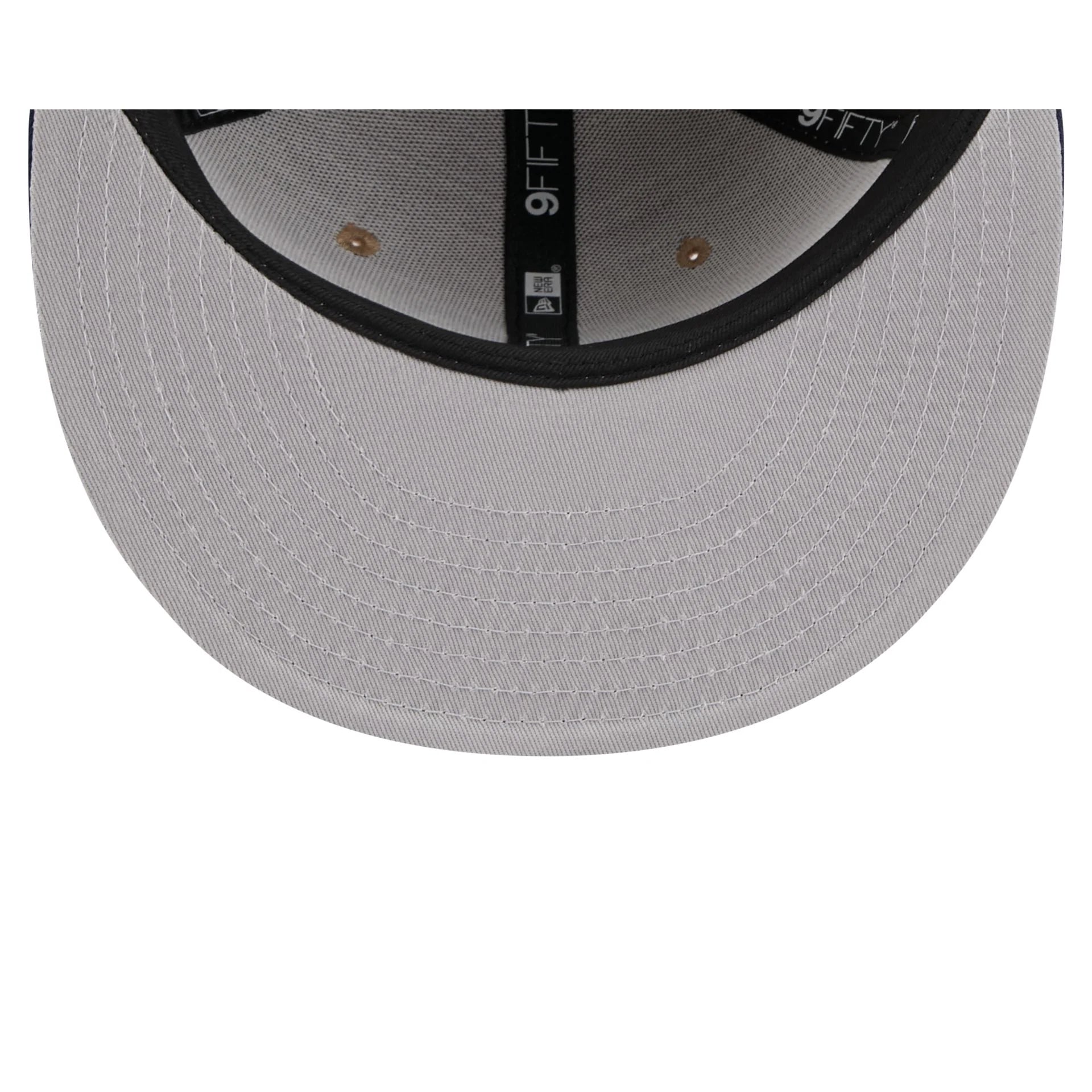 The Memphis Grizzlies 2024 Draft 9FIFTY Snapback features an embroidered Grizzlies logo and team wordmark at the front panels with the official NBA Logoman above a snapback closure at the rear and a gray undervisor.