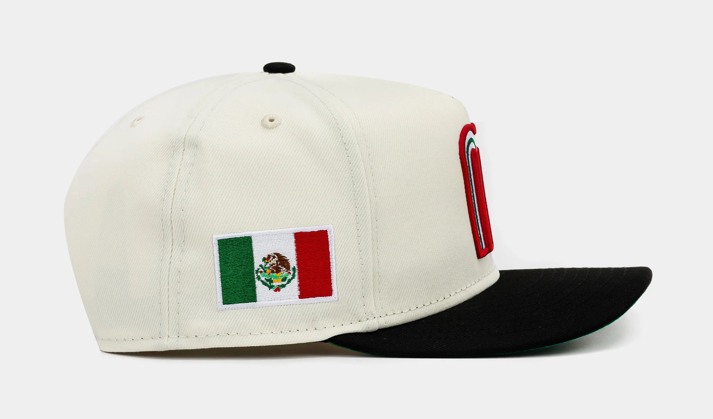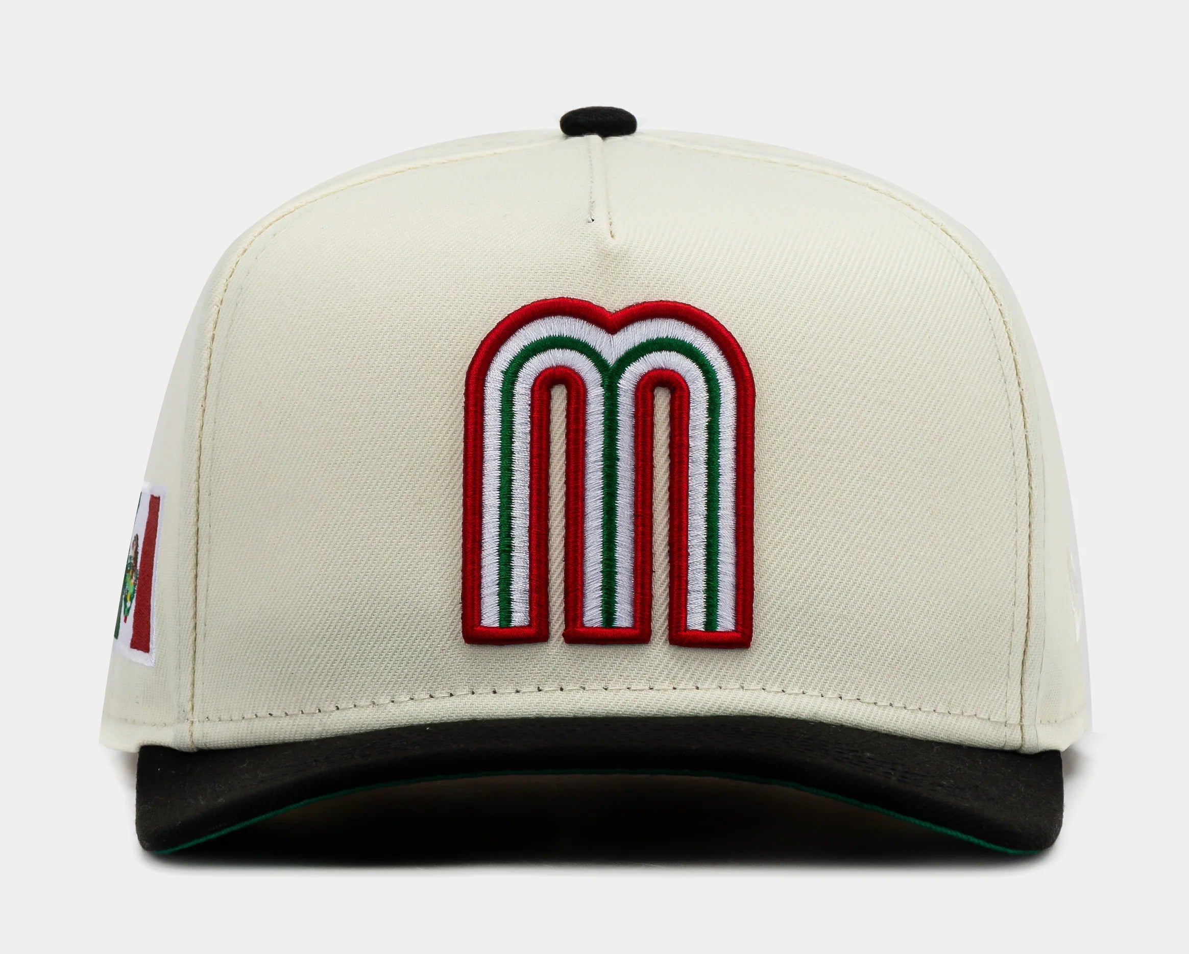 This New Era Mexico design. This 950AF Hat is constructed of an all over Beige crown Mexico on the front panel.