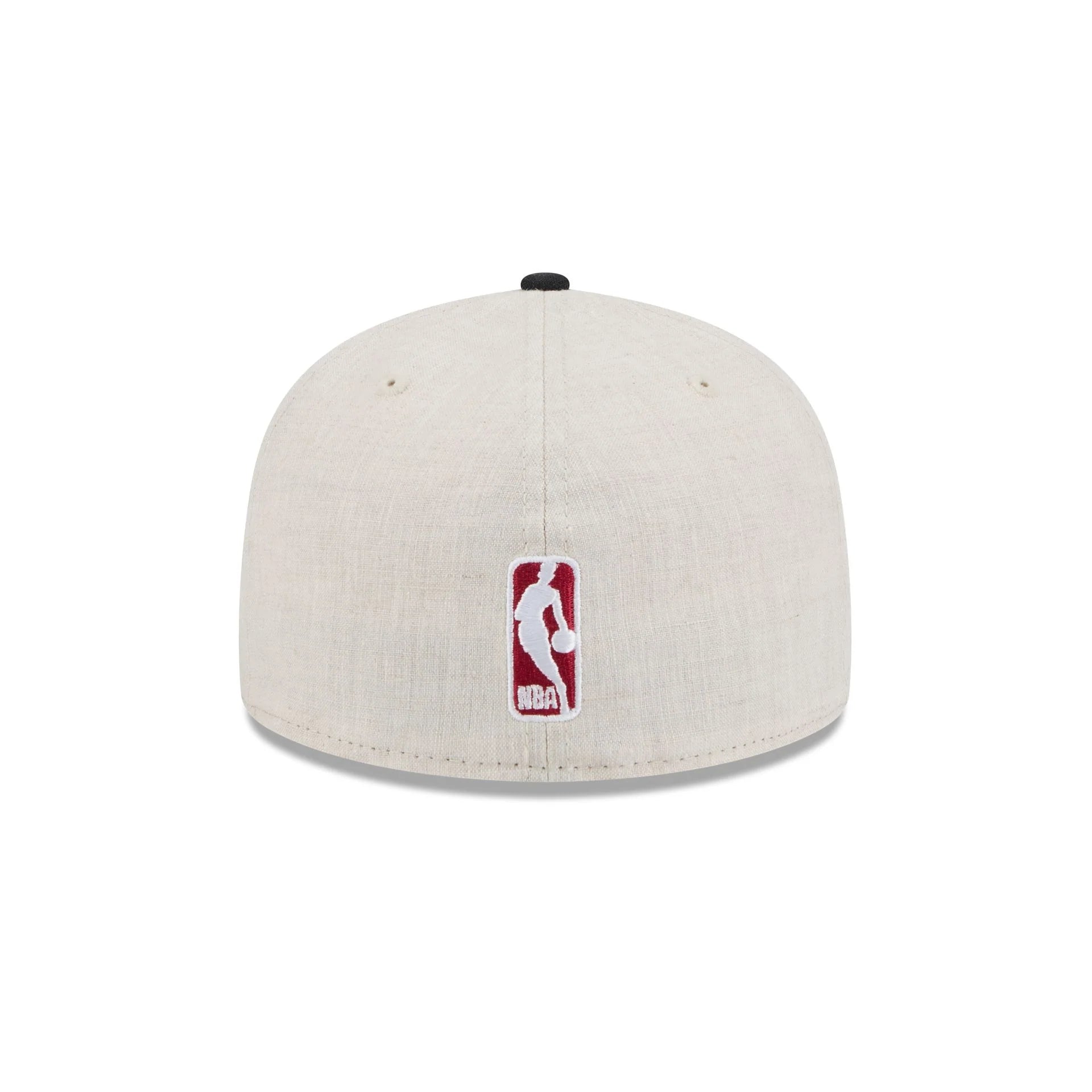 The Miami Heat Linen 59FIFTY Fitted Cap features an embroidered Heat logo at the front panels against a linen fabrication with a matching NBA Logoman at the rear. Additional details include a team wordmark at the right-wear side and a gray undervisor.