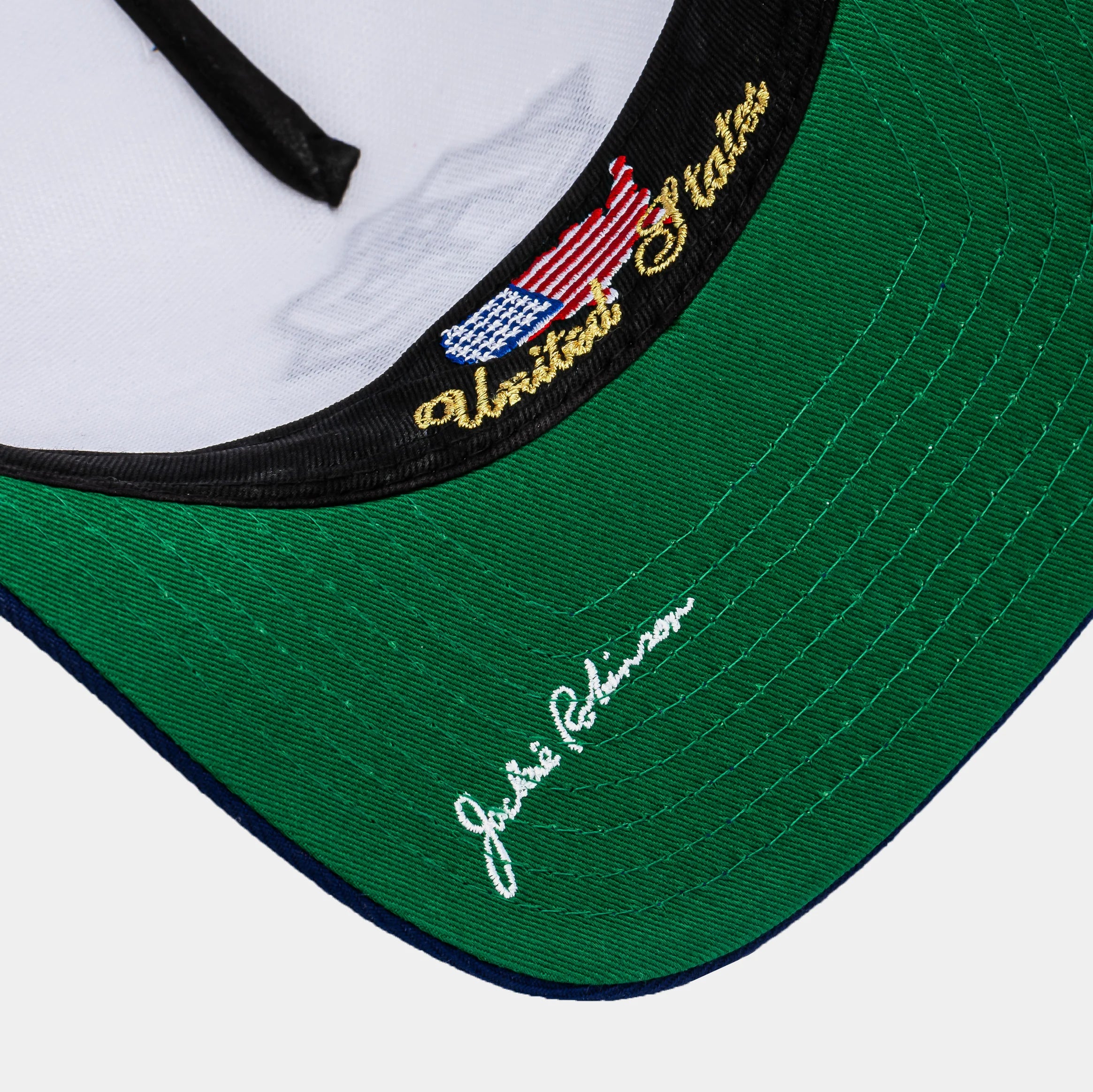 Honor baseball’s trailblazer with the Jackie Robinson 42 Snapback by New Era. This cap stands out in a crisp white crown with a royal blue visor, celebrating Robinson’s lasting legacy with the Dodgers.