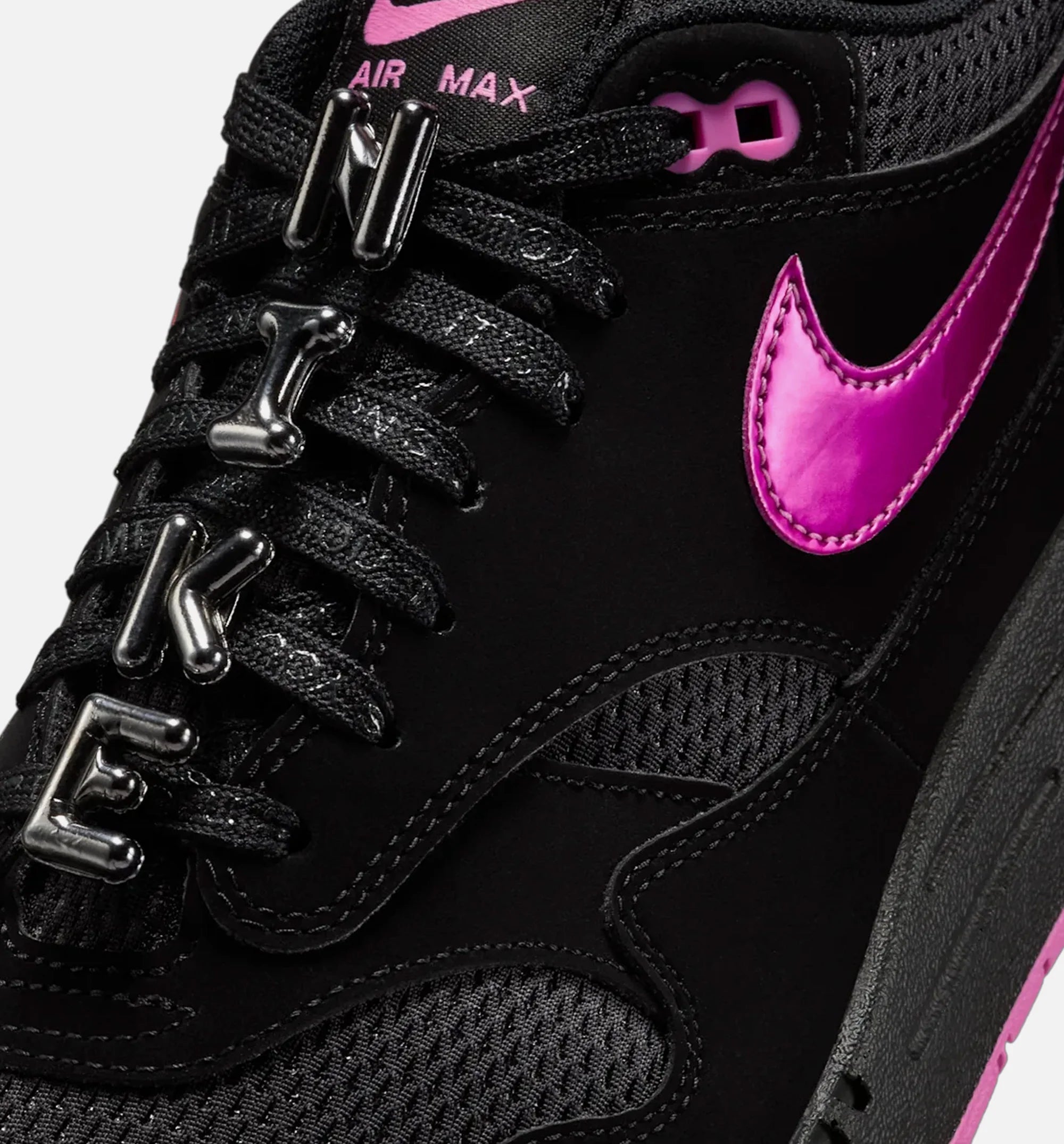 What's more fun than giving balloons to your special someone? Rockin' a balloon-inspired Air Max 1! Dressed in formal black and Playful Pink, this premium version celebrates the season of love through the legendary sneaker that first introduced visible Air to the world. Whether you're cruising out for date night or kickin' back with your friends, you'll be keeping love in your heart—and on your feet.