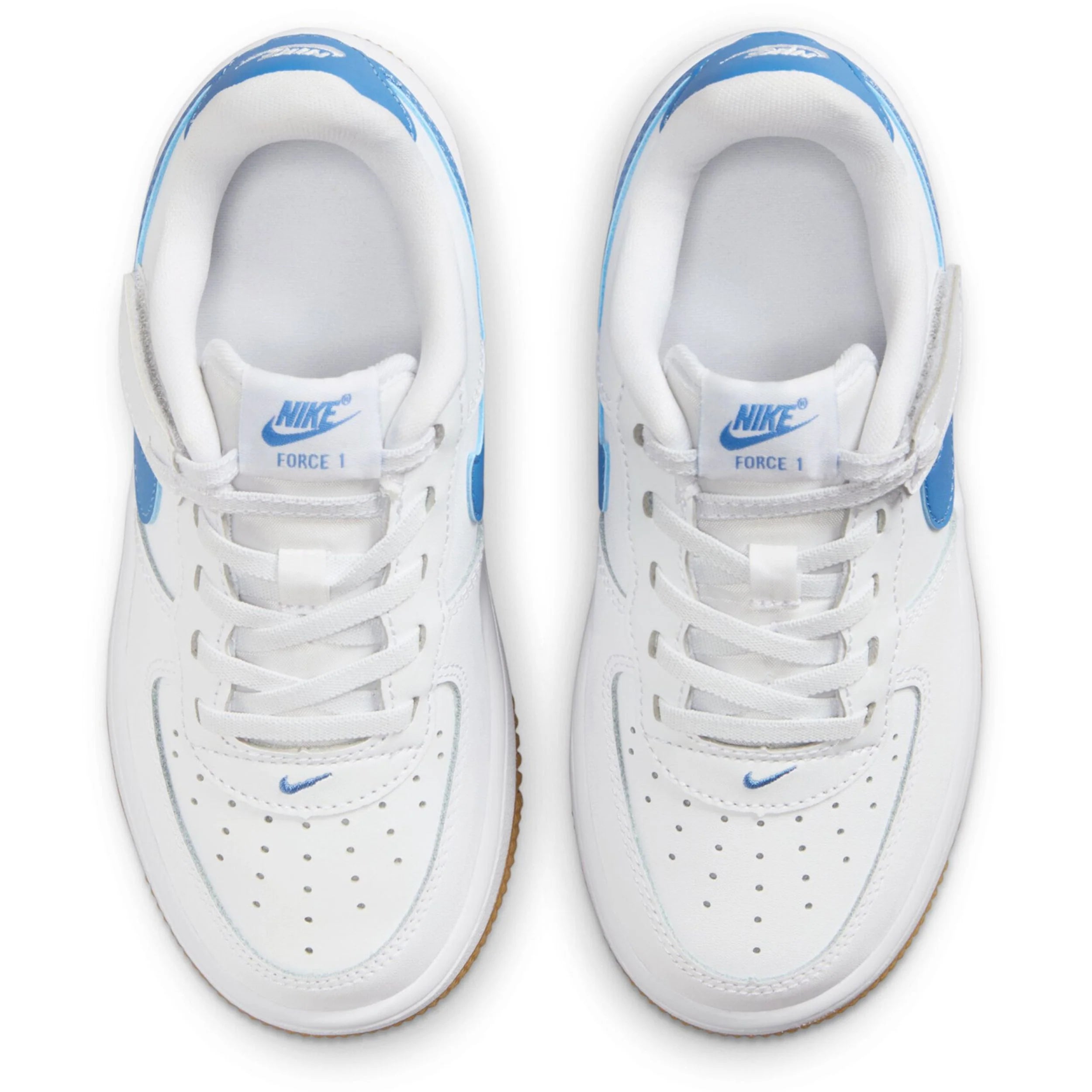 The look of laces without the struggle of having to tie them? Now, that's easy. The laces on these sneakers are just for show---the top two lace loops are attached to a hook-and-loop strap so kids can fasten them fast while still enjoying the traditional look of the AF1. But these shoes aren't just easy for kids to put on. We designed them around kids' feet for overall comfort too.