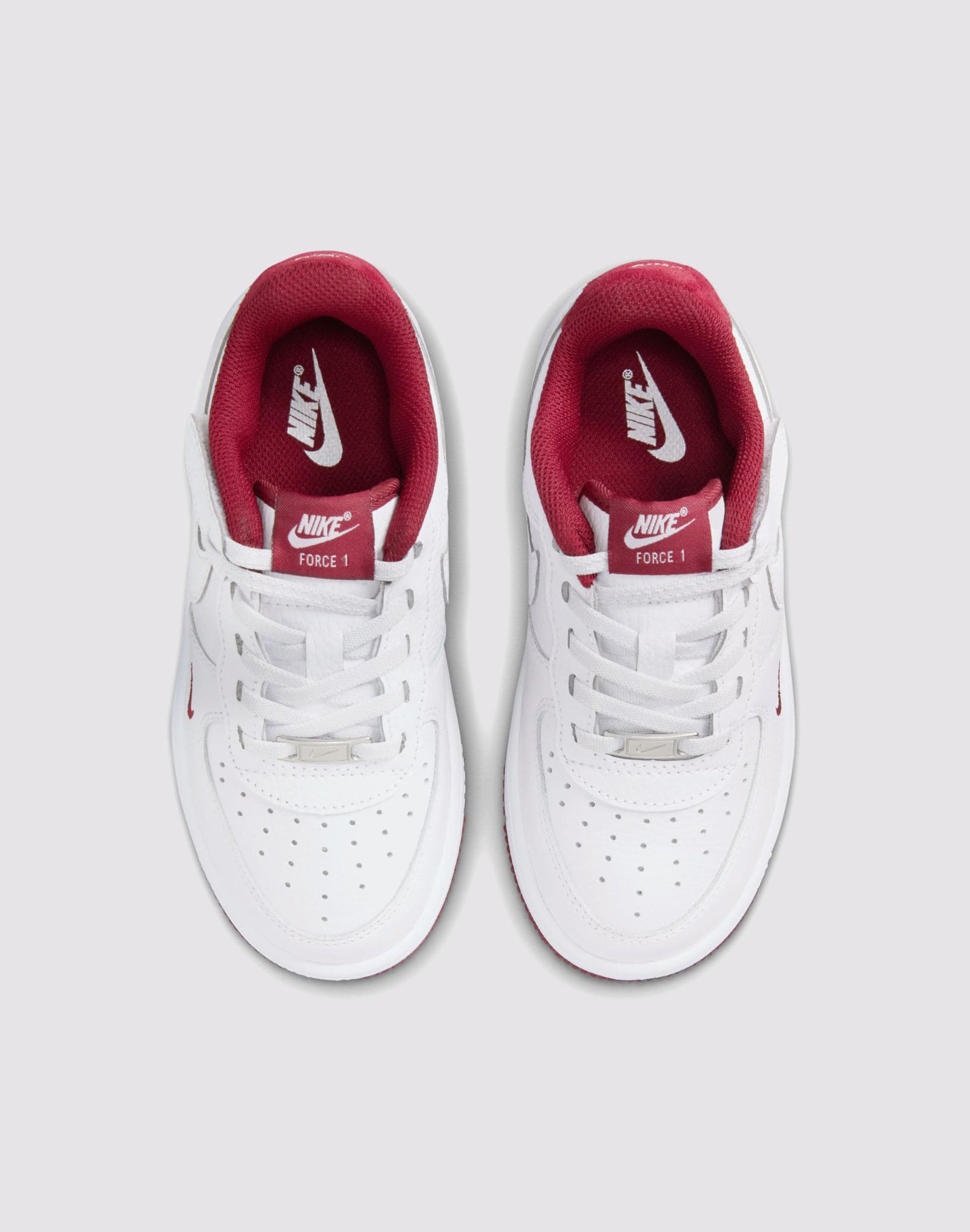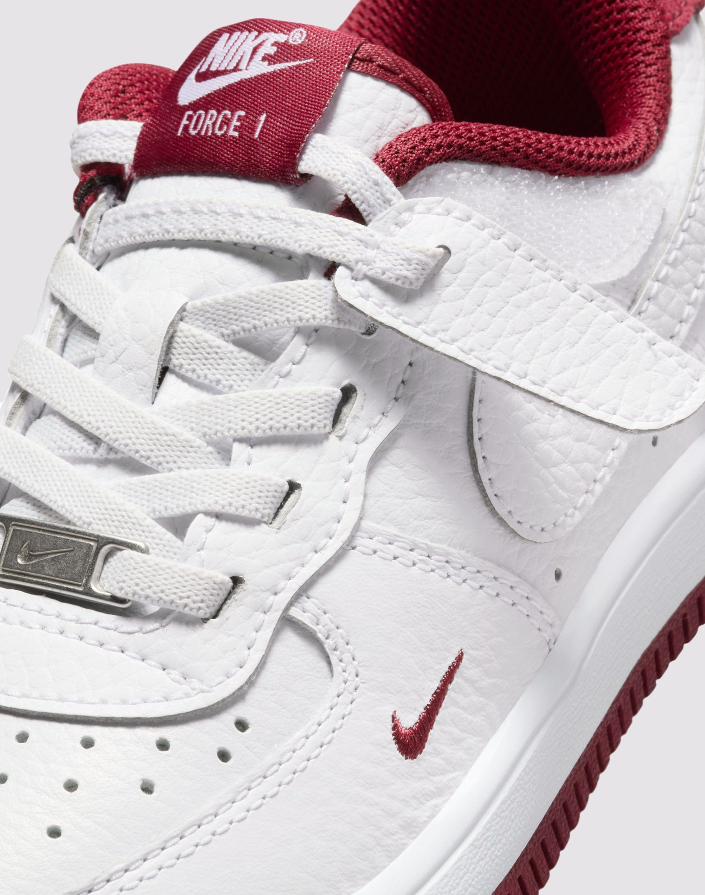 Designed around kids' feet for improved entry and overall comfort, the kids-right Nike Air Force 1 Low EasyOn LV8 3 Preschool Boys' "White/Team Red" Shoe? is as easy to wear as it is to put on. What makes it EasyOn? The laces are just for show—the top two lace loops are attached to a hook-and-loop patch so kids can fasten them like a strap and still enjoy the look of a traditional Force 1 Low.