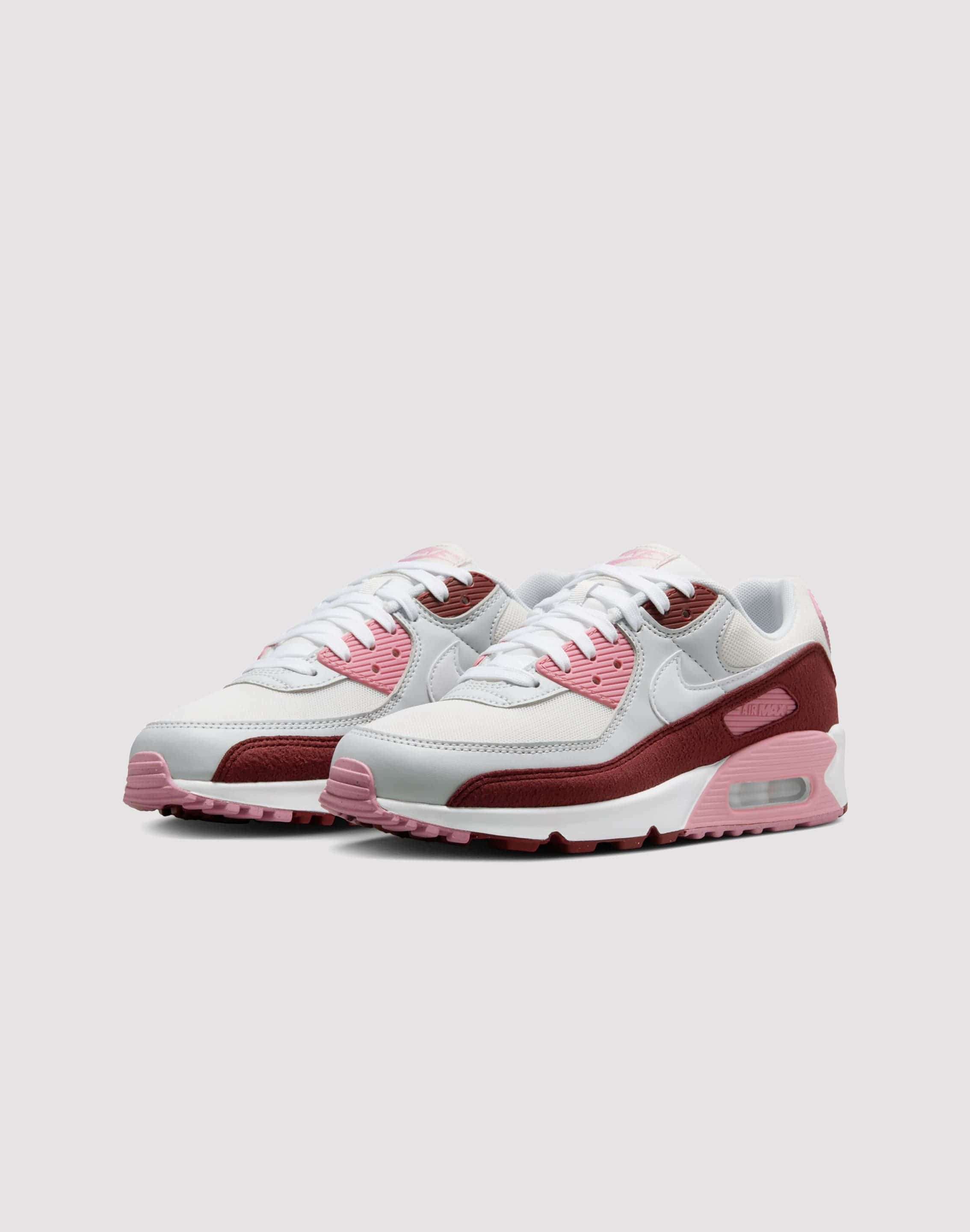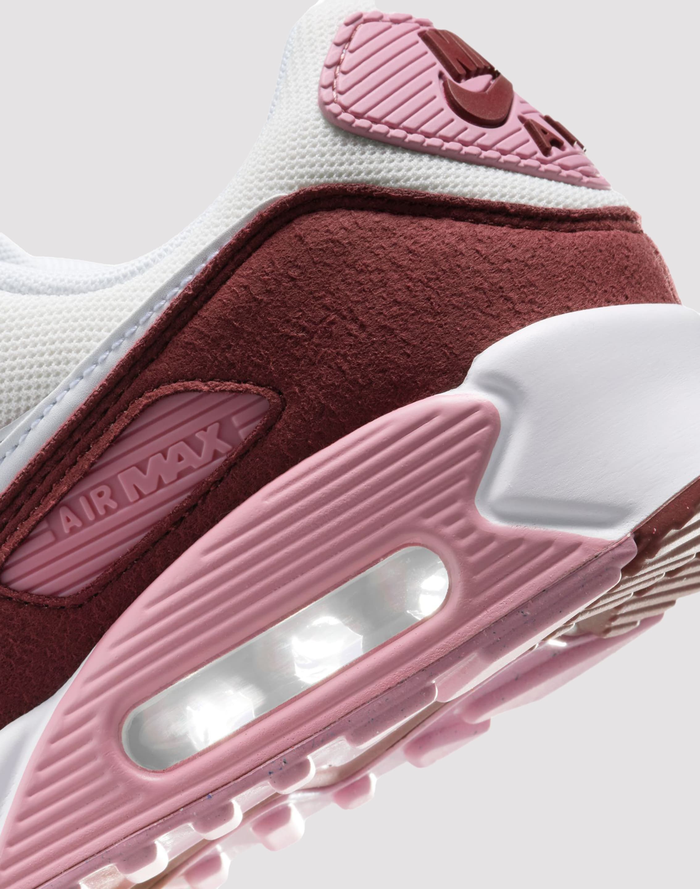 The Nike Air Max 90 SE "Dark Team Red/White/Platinum Tint" Women's Shoe stays true to its running roots with the iconic Waffle sole. Plus, stitched overlays and textured accents create the '90s look you love. Complete with romantic hues, its visible Air cushioning adds comfort to your journey.