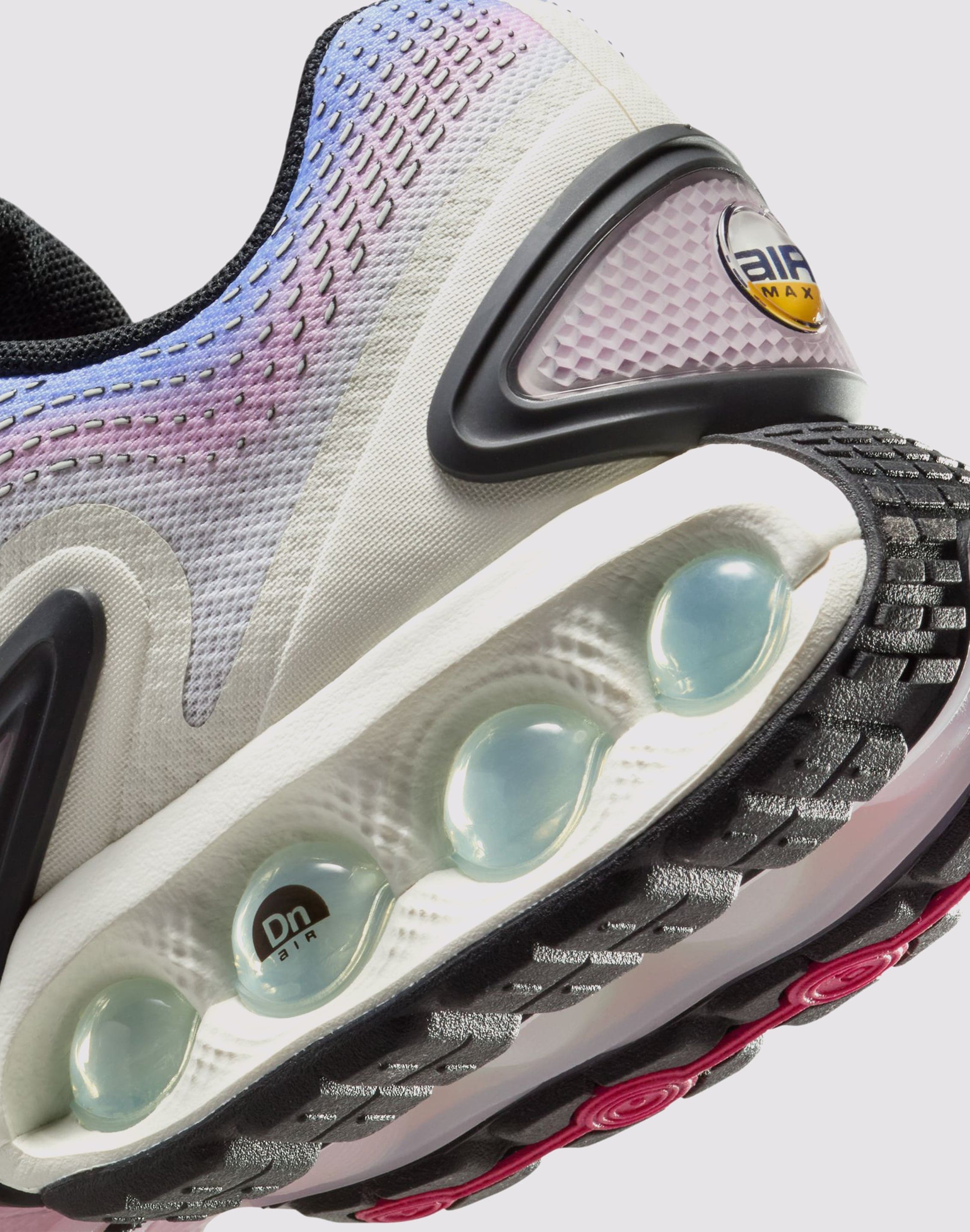 The Nike Air Max Dn Premium "Dawn" Women's Shoe features our Dynamic Air unit system of dual-pressure tubes, creating a responsive sensation with every step. This results in a futuristic design that’s comfortable enough to wear from day to night. Go ahead—feel the unreal.