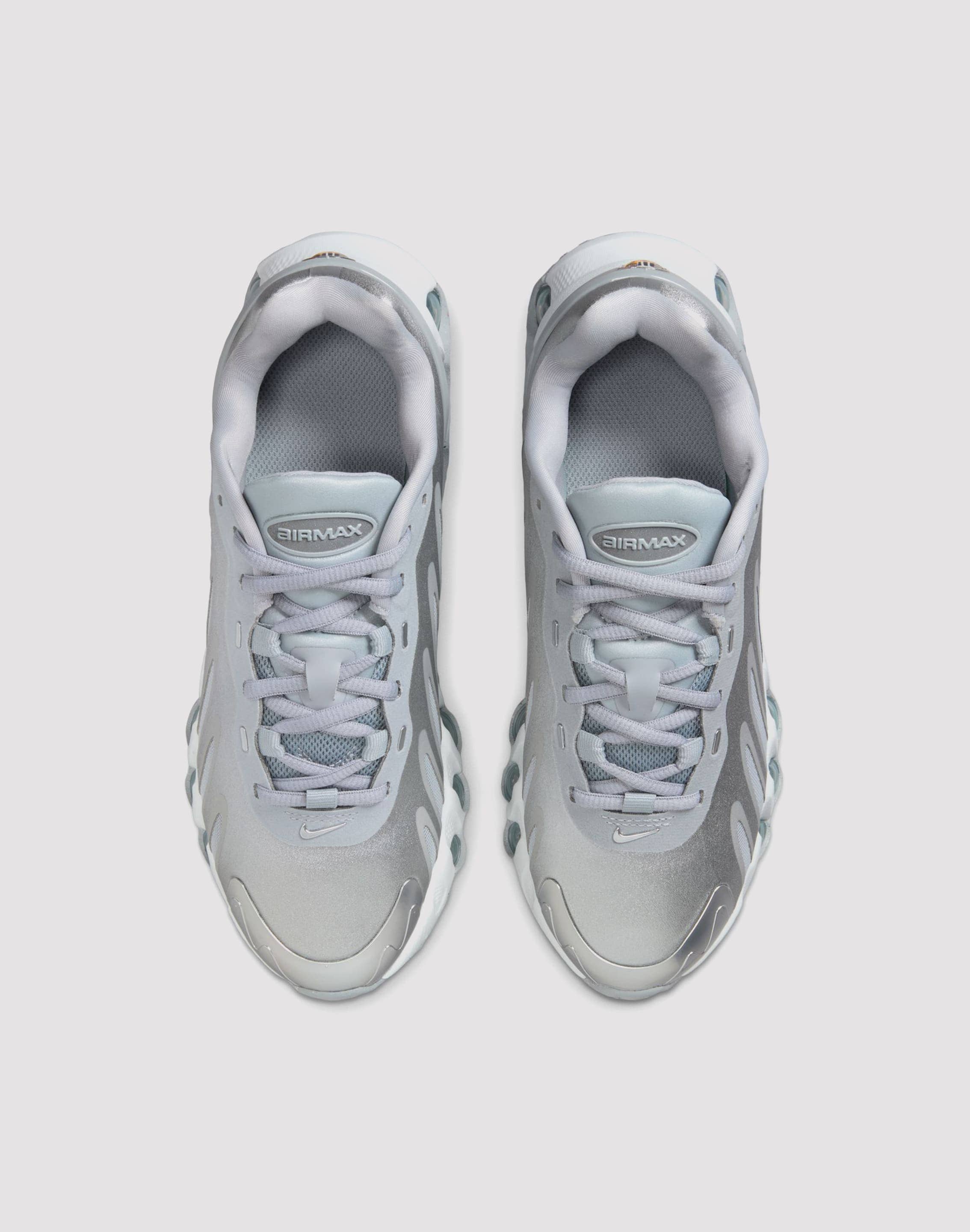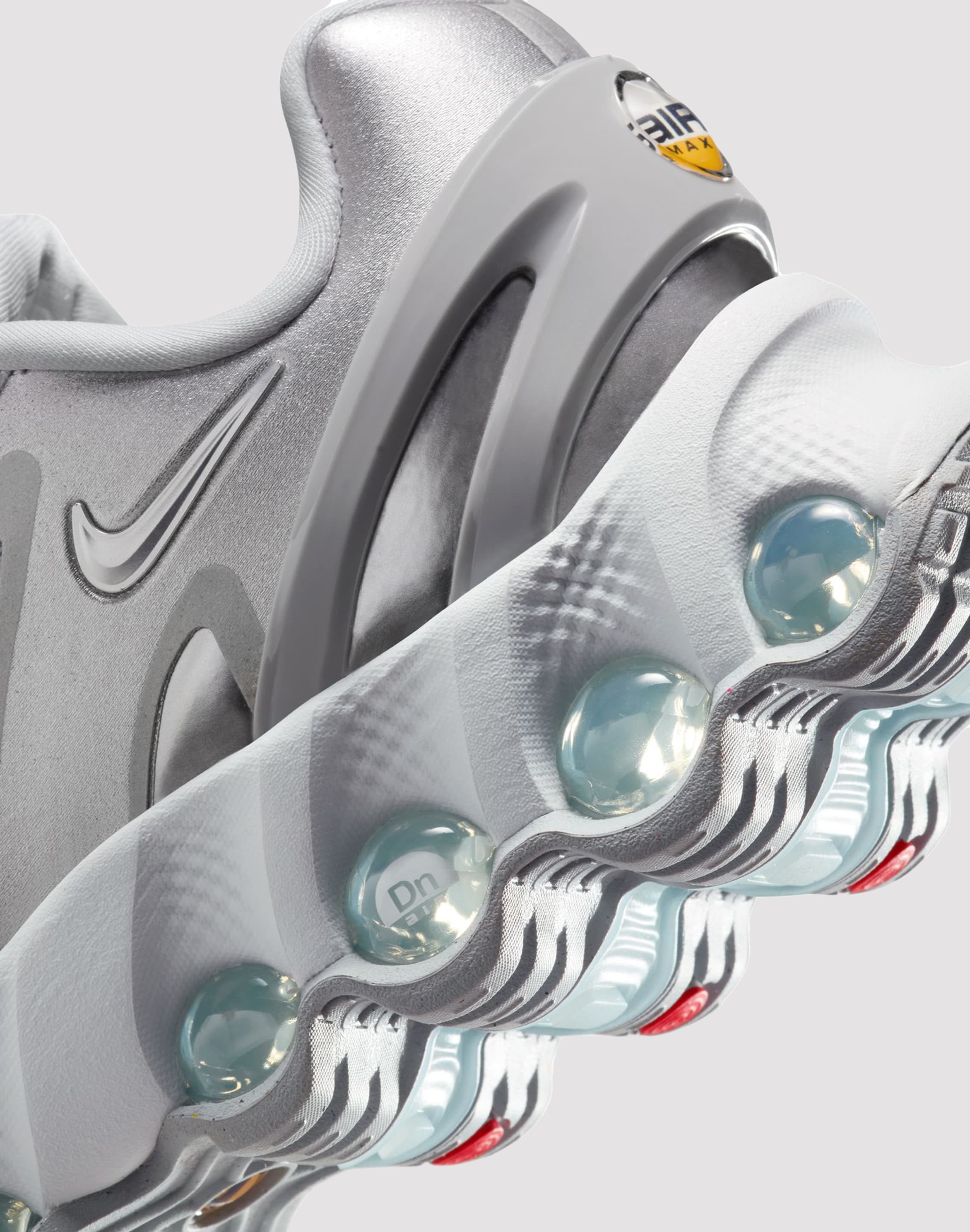 More Air, less bulk. The Nike Air Max Dn8 "Metallic Silver" Grade School Kids' Shoe takes our Dynamic Air system and puts it into a sleek, low-profile package. Powered by eight pressurized Air tubes, it gives you a bouncy sensation with every step. Enter an unreal experience of movement.