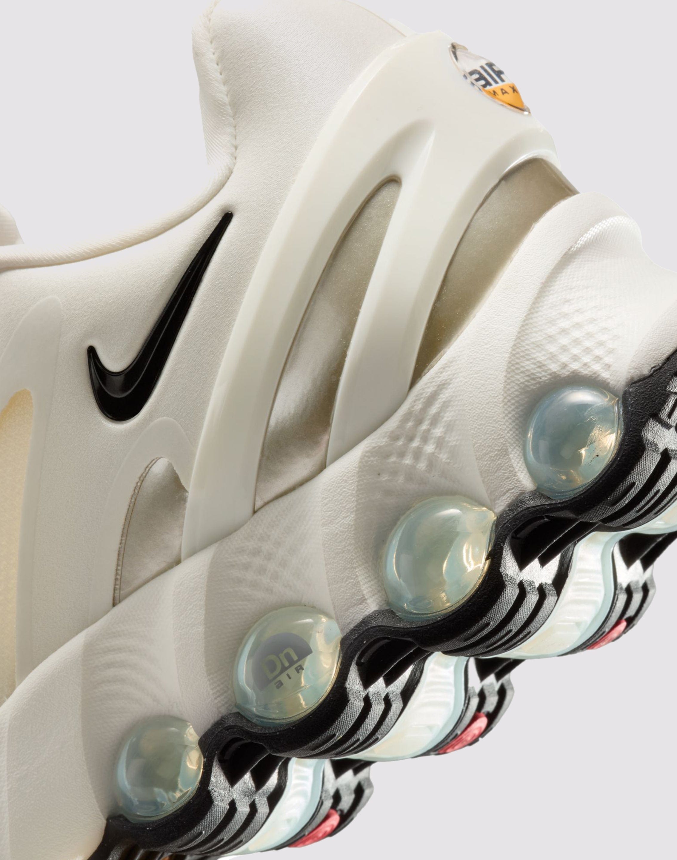 More Air, less bulk. The Nike Air Max Dn8 Women's "Sail/Black/Fossil" Shoe takes our Dynamic Air system and condenses it into a sleek, low-profile package. Powered by eight pressurized Air tubes, it gives you a responsive sensation with every step. Enter an unreal experience of movement.