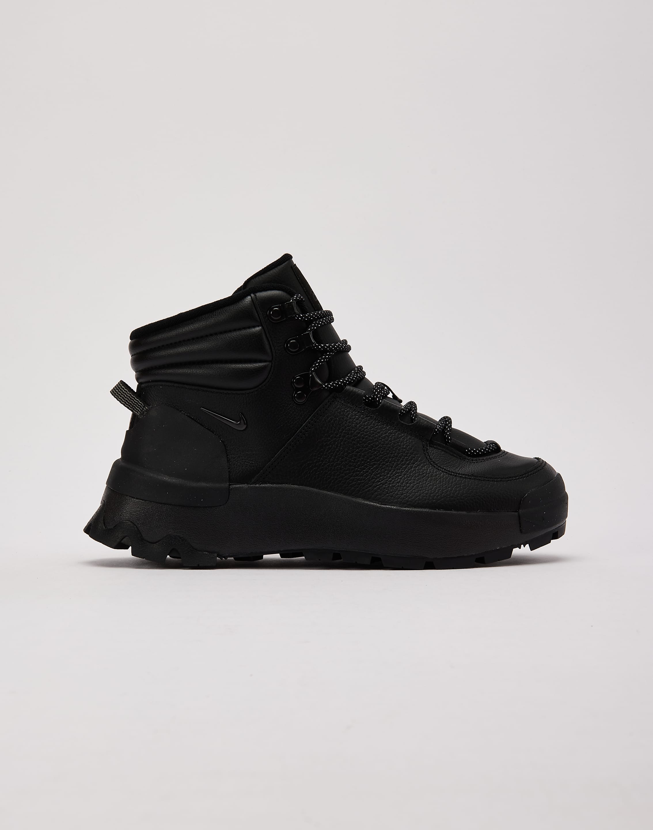 With a gusseted tongue to block water and debris and a warm fuzzy lining, the Nike City Classic Premium Waterproof Boot is built for any terrain. Natural and synthetic leather, metal hardware, and hiking-inspired laces create an outdoorsy style fit for both trail and street.