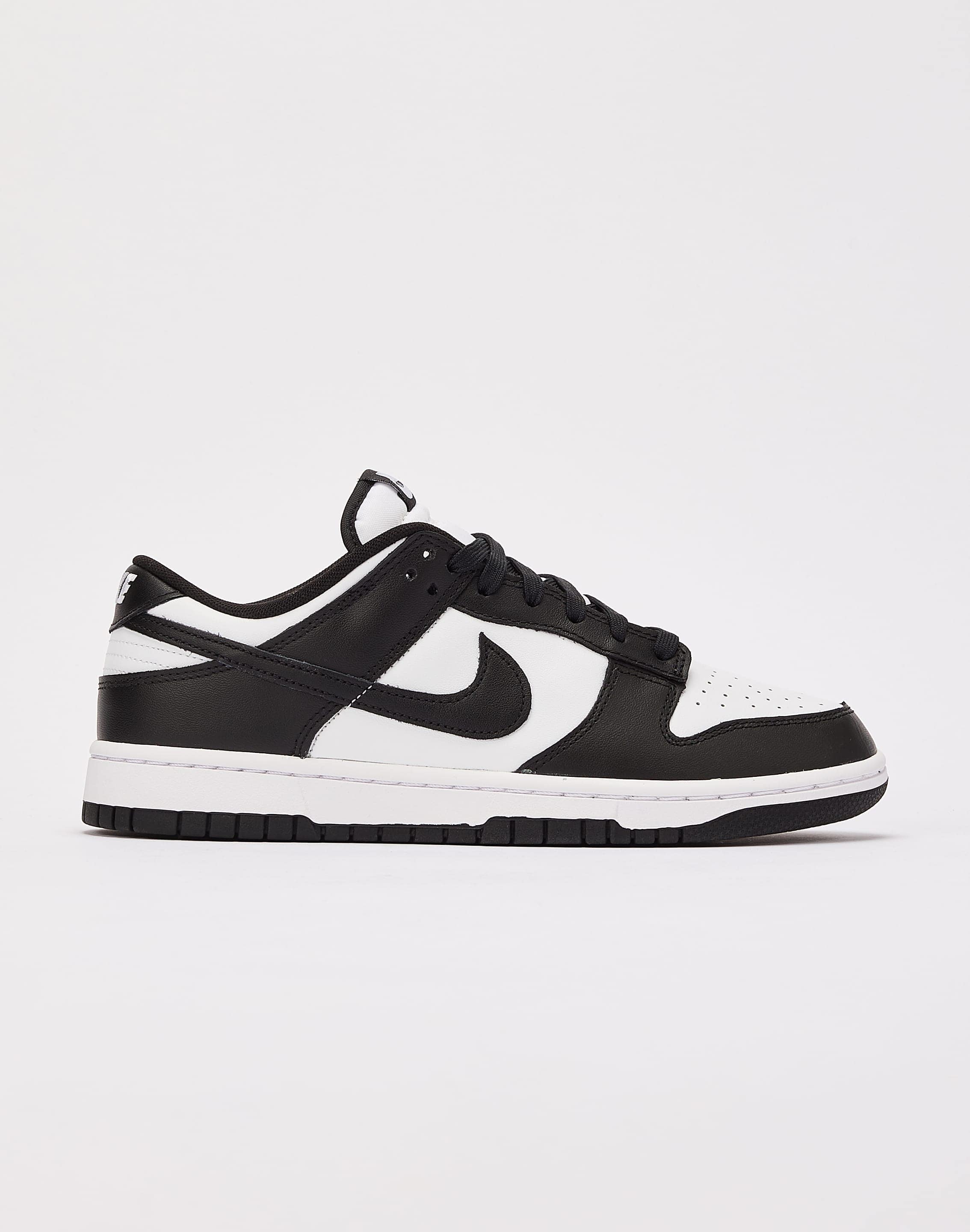 Created for the hardwood but taken to the streets, the '80s b-ball icon returns with perfectly shined overlays and classic team colors. With its iconic hoops design, the "Panda" Nike Dunk Low channels '80s vintage back onto the streets while its padded, low-cut collar lets you take your game anywhere.
