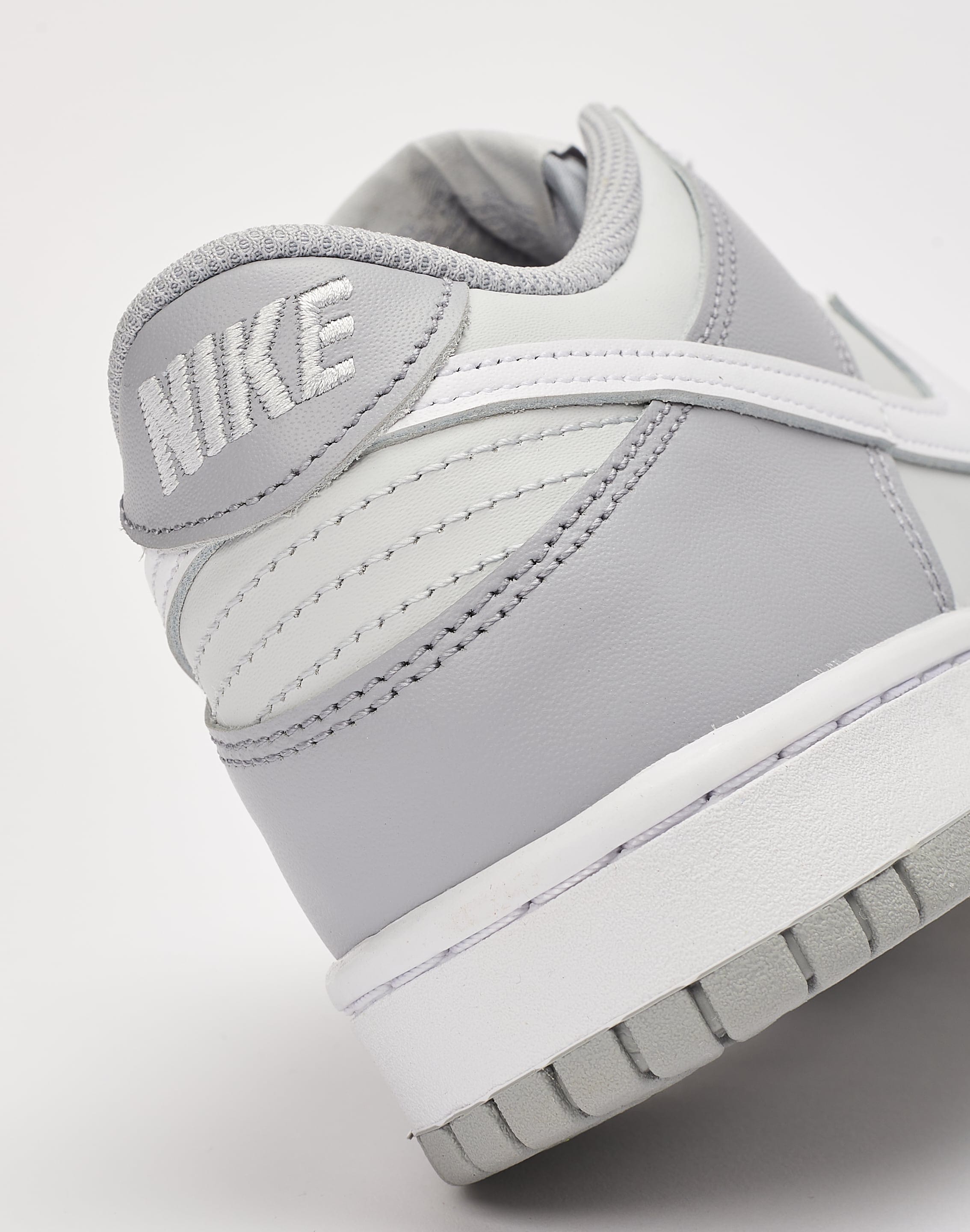The '80s basketball icon is back in a new colorway. This grade-school Nike Dunk Low is done in a two-tone grey color scheme and features bright white accents.