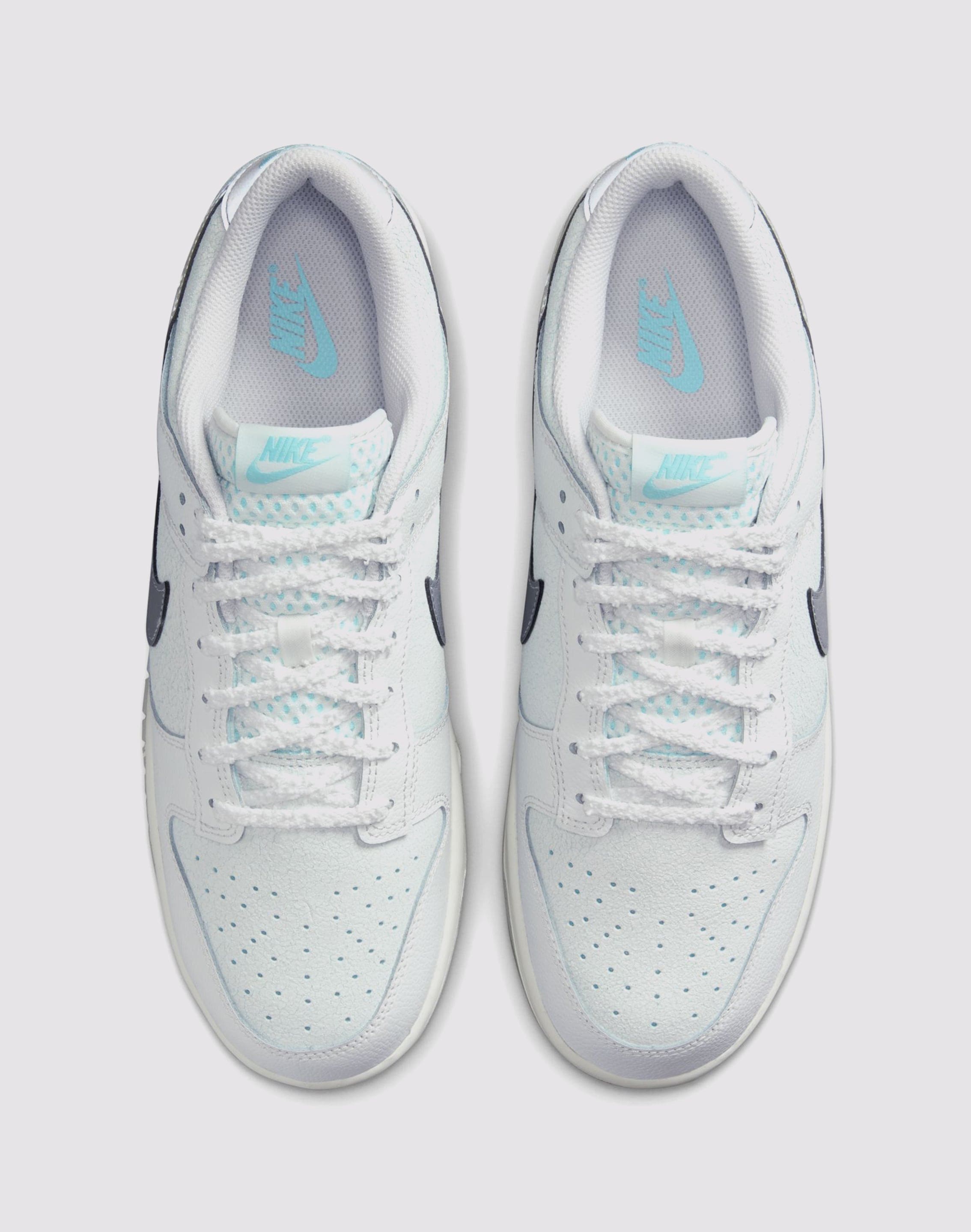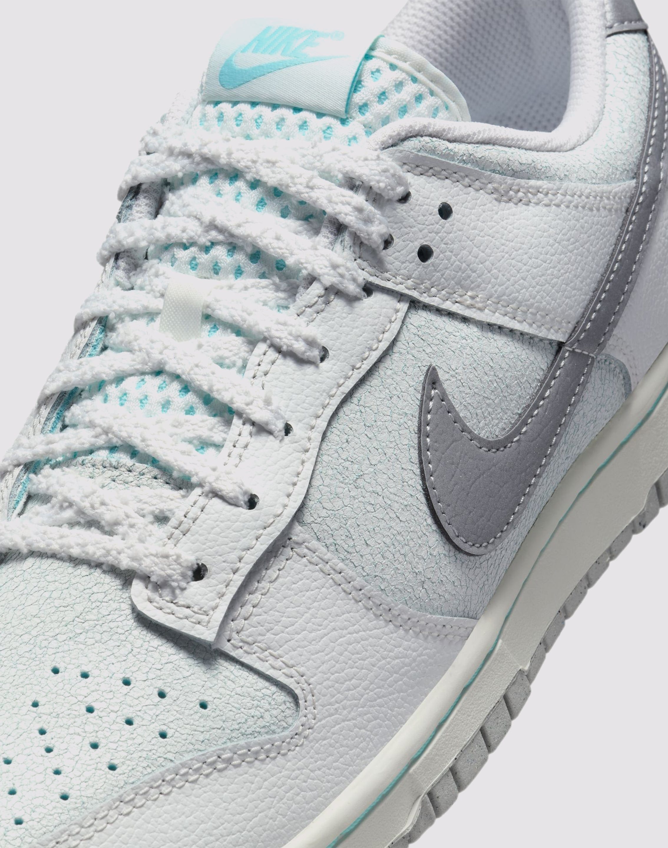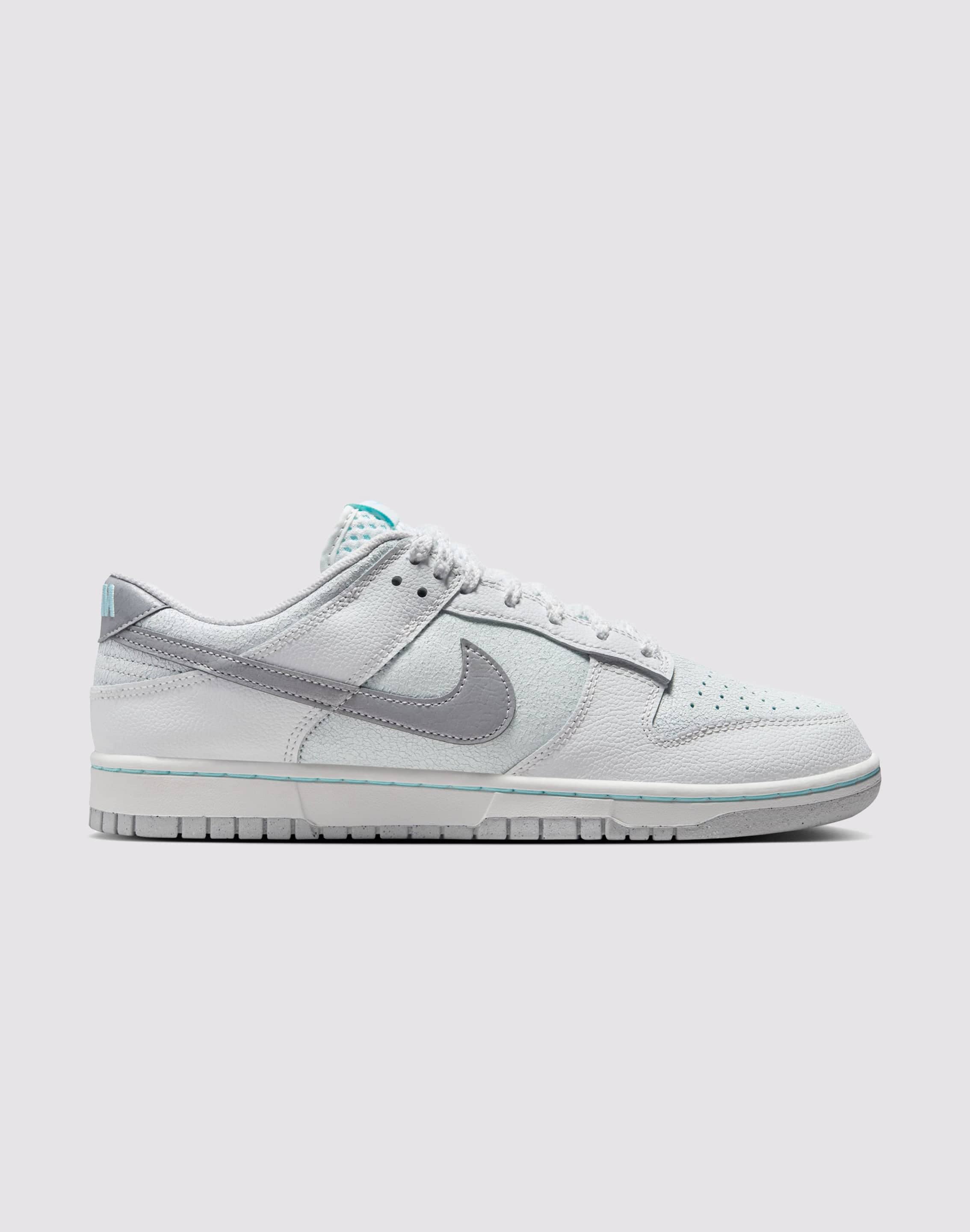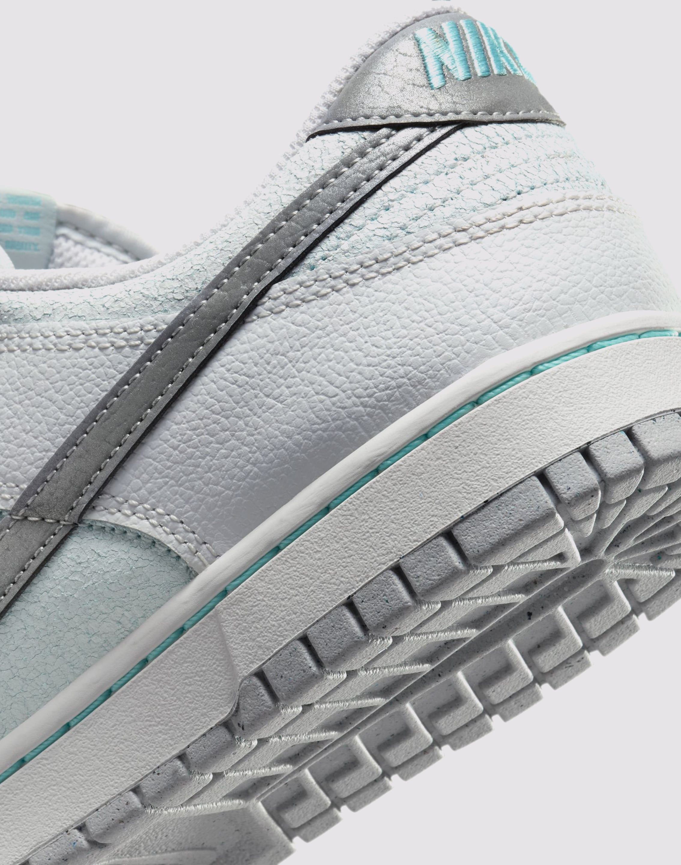 Created for the hardwood but taken to the streets, the Nike Dunk Low Retro "Summit White/Metallic Silver/Glacier Ice" Men's Shoe returns with crisp overlays and original team colors. This basketball icon channels '80s vibes with premium leather in the upper that looks good and breaks in even better. Modern footwear technology helps bring the comfort into the 21st century.