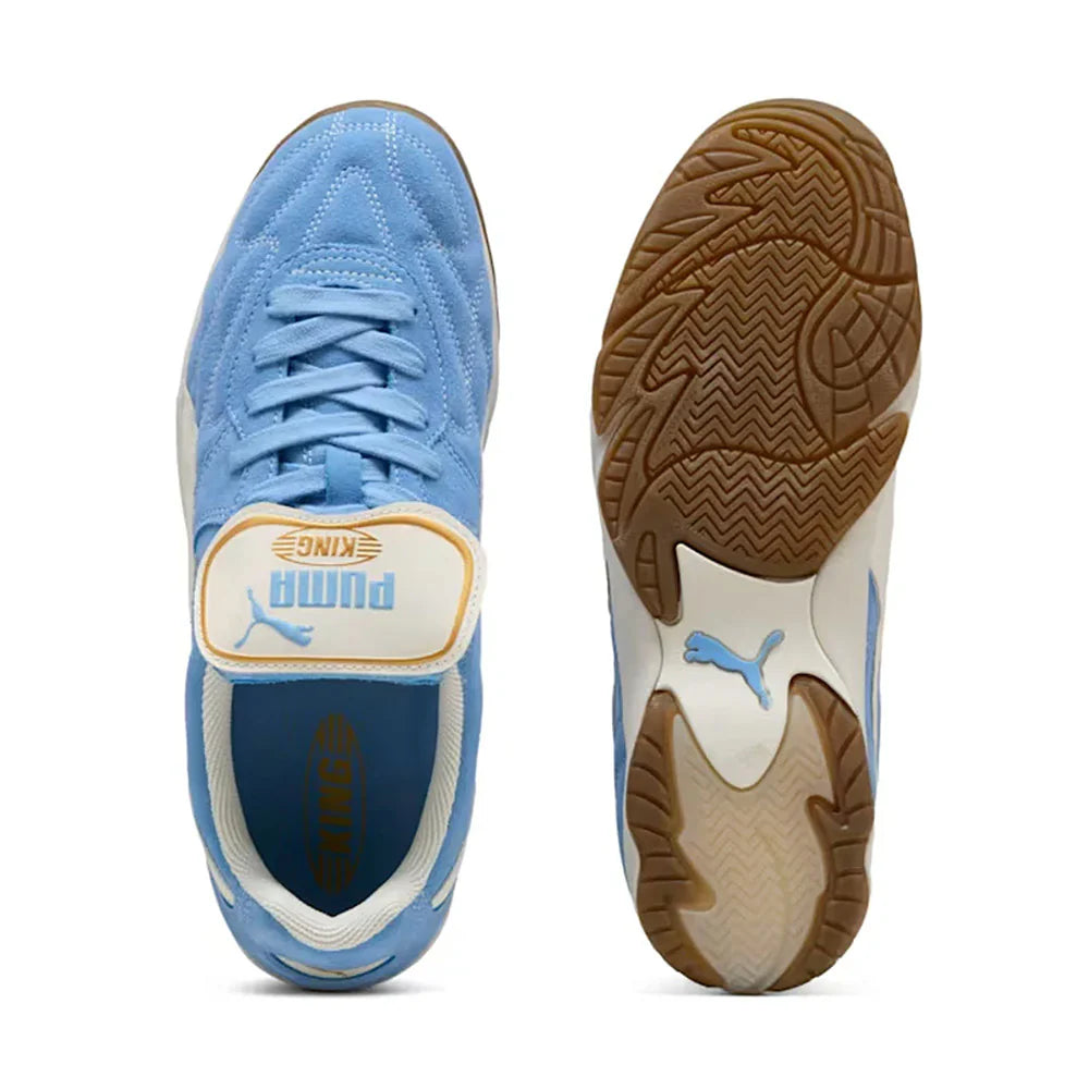 We're embracing our history to dominate the future. This season we reintroduce the classic KING Indoor silhouette from our archives, fusing iconic football heritage with contemporary street style. The PUMA King Indoor Royalty features a hairy suede upper, removable folded tongue for two looks in one, and retro-inspired stitching.