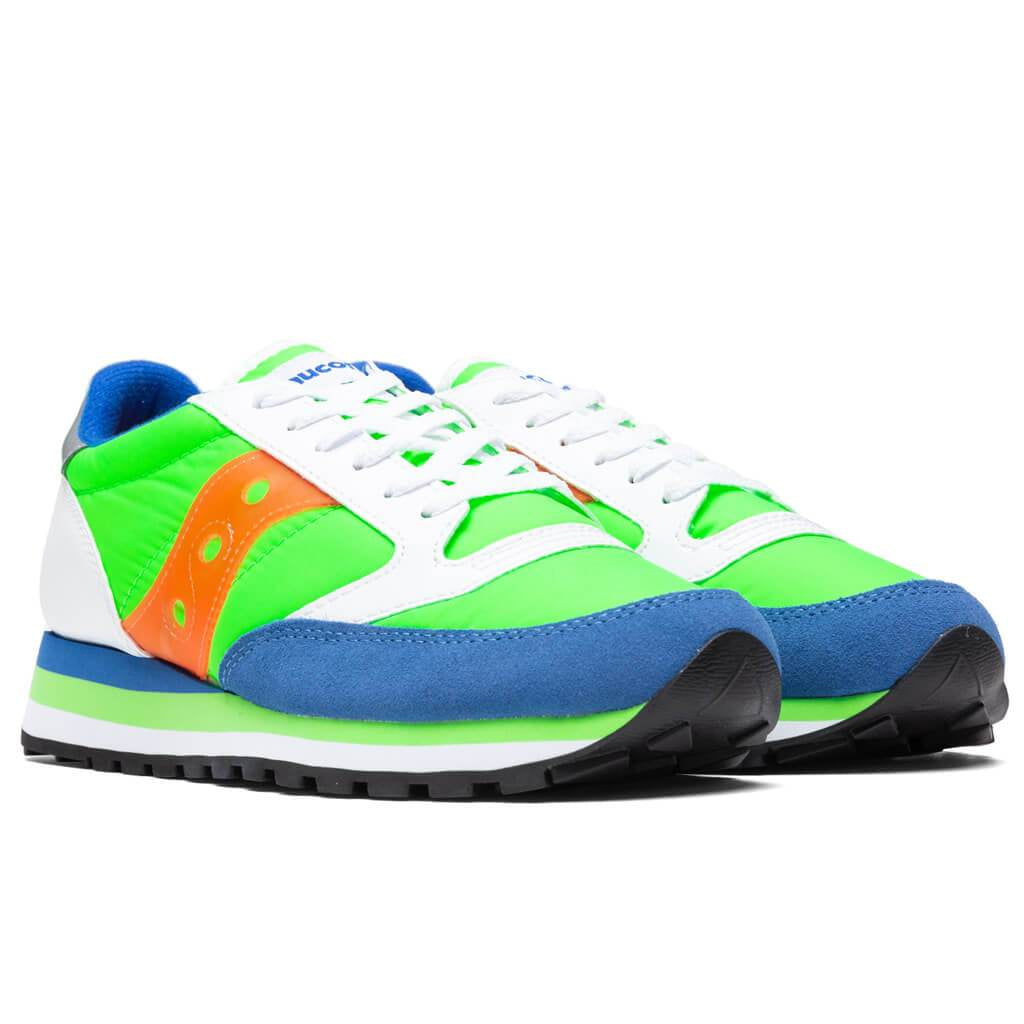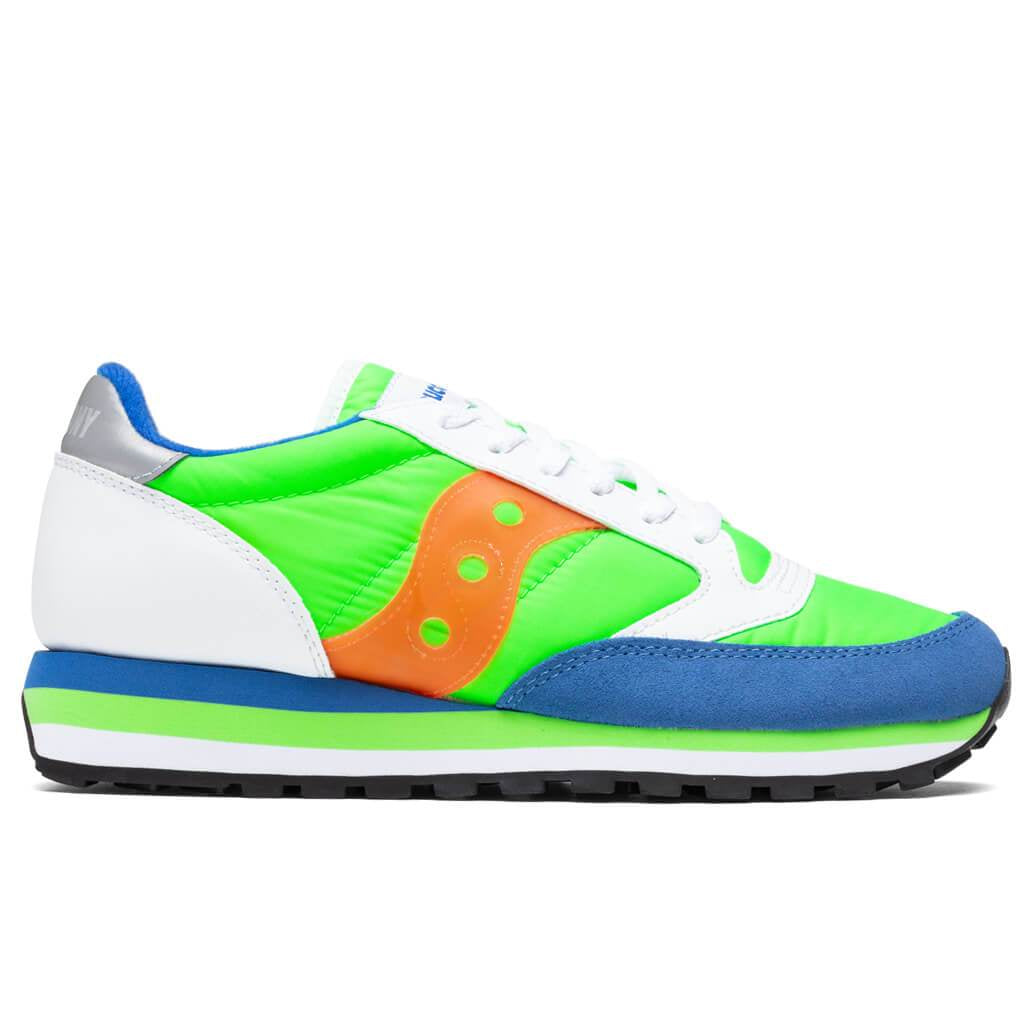 Saucony was founded in 1898 in Kutztown, Pennsylvania. The primary focus of the Saucony Originals Collection reintroduces retro runners in new color ways while using premium materials. Padded collars and tongues make these Saucony running shoes one of the best choices for extended wear times. Pictured is the Saucony Jazz Triple in Slime/Blue.