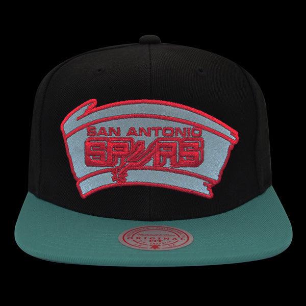 San Antonio Spurs Mitchell And Ness NBA REFLECTIVE TIME Snapback Hat - Black/Teal/Pink