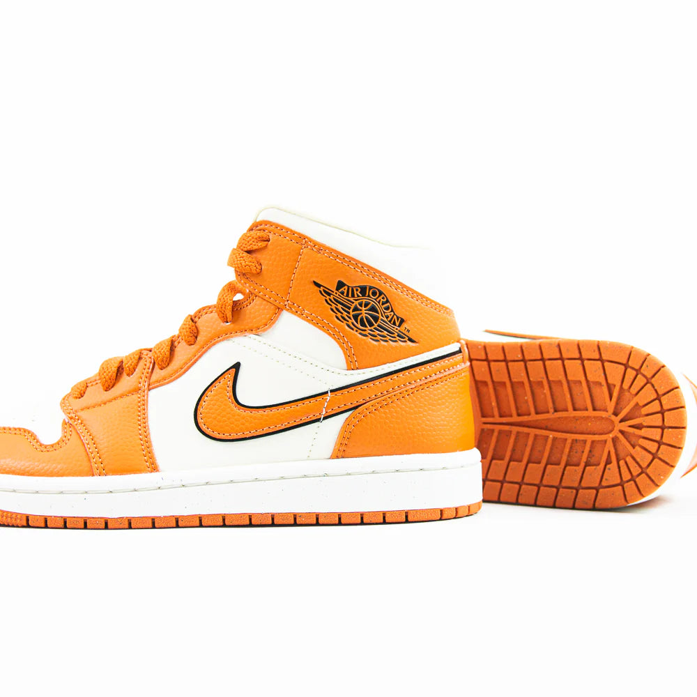 WMNS Nike Air Jordan 1 Mid SE Coconut Milk Sport Spice Black White Orange Sneaker Shoe Trainer