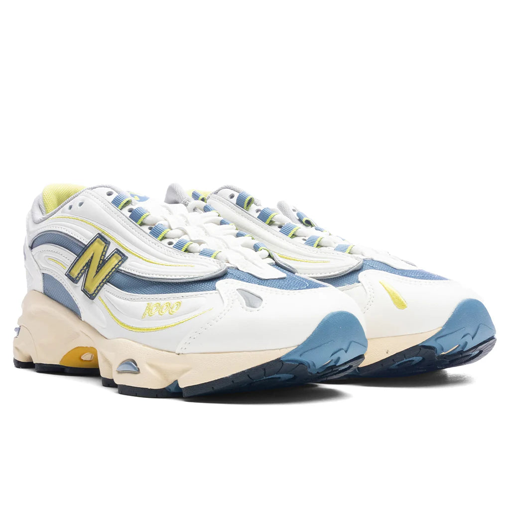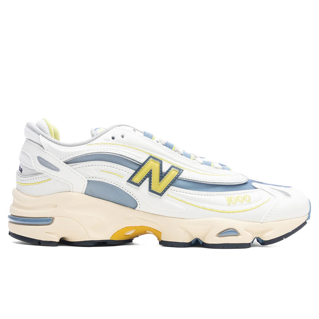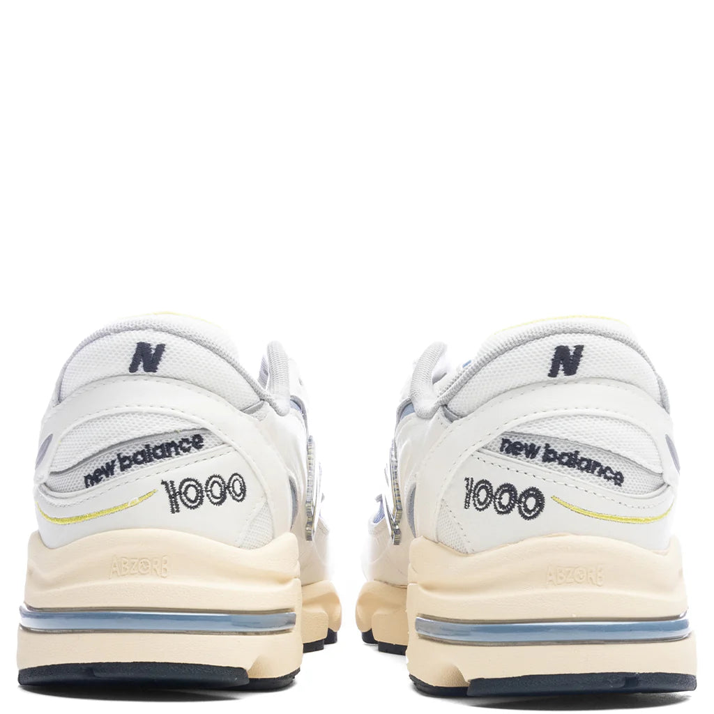 The New Balance 1000 in Sea Salt/Heron Blue brings a stylish edge to your footwear collection. The combination of breathable mesh underlays and durable synthetic overlays creates a dynamic, textured appearance. The sculpted midsole details and embroidered accents enhance the shoe's appeal, while the Stability Web adds a unique visual element. Reflective accents provide a sleek, modern look, and the rubberized 'N' logo with a transparent outline adds a bold, contemporary finish to this design.