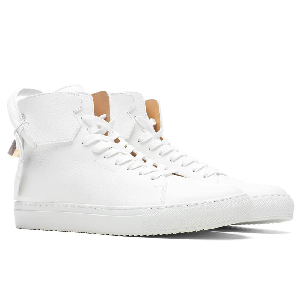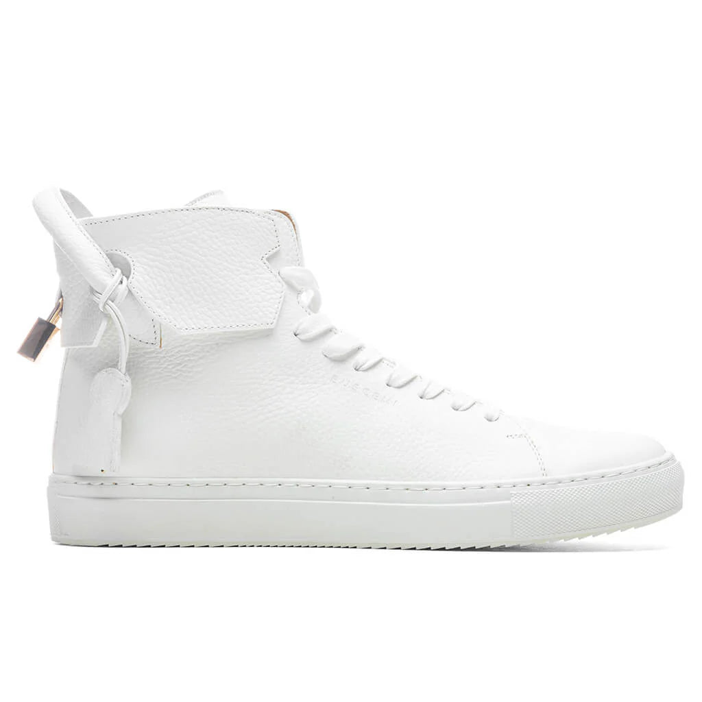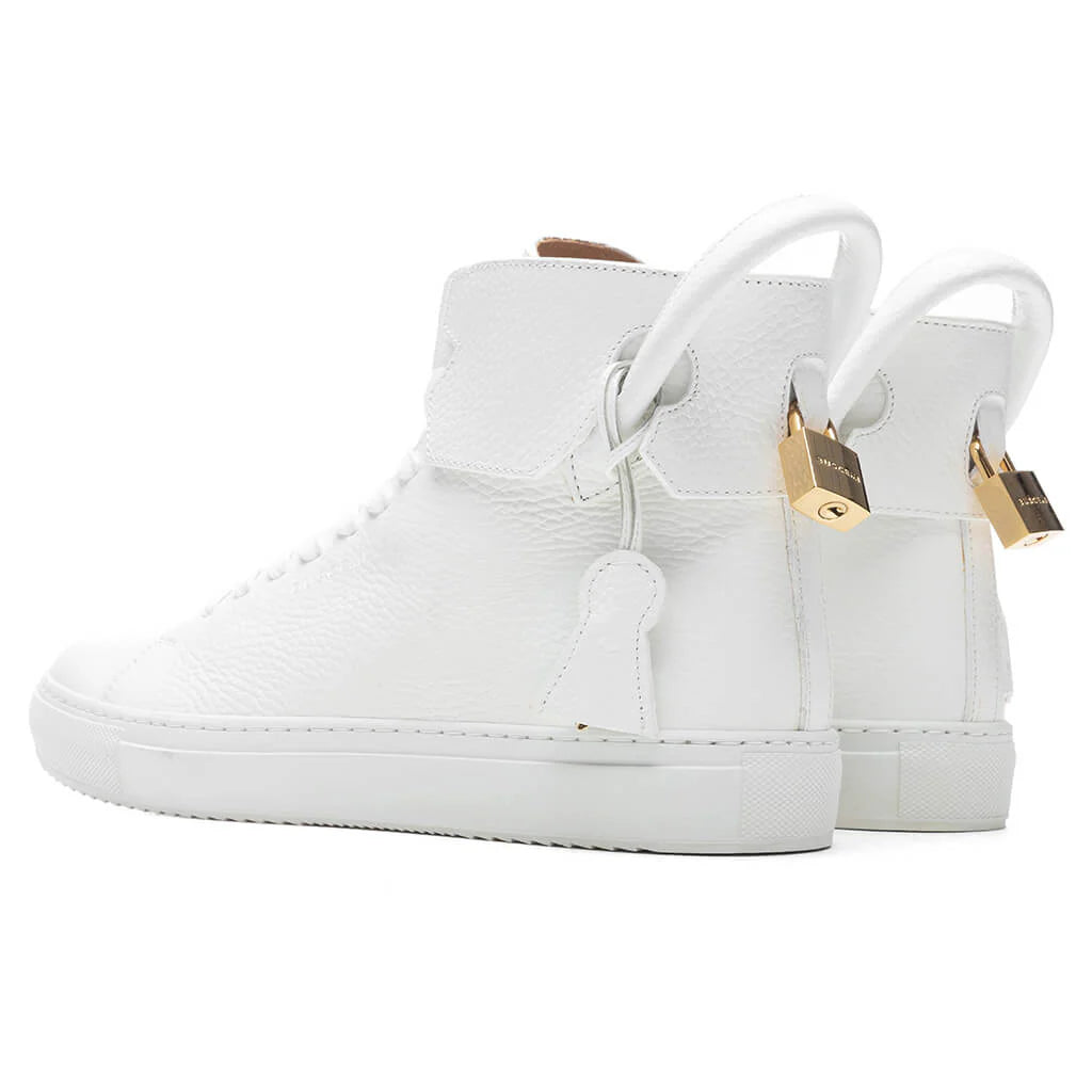American luxury label Buscemi introduces the 125MM. Composed of full grain calf-tanned pebbled leather within the upper, the sneaker features a calf skin liner along with a gold-plated lock and key at the heel loop. The cotton waxed laces provide a secure fit, while the padded tongue is treated with an embossed logo. Geometric flaps reside at the collar, while the extended heel handle paired with the rubber outsole finishes the look.