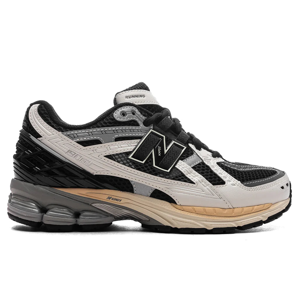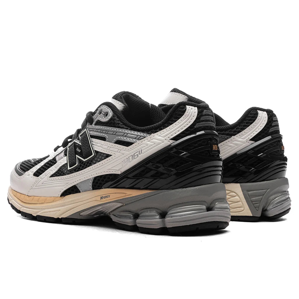 The New Balance 1906 Utility in Black/Sea Salt/Magnet makes an impression with its premium aesthetic. The design is composed of a mesh upper and includes suede overlays and a padded collar. A debossed New Balance woven patch resides at the tongue, while the contrast stitching details along with the additional branding at the heel and rear make a statement. The N-ERGY and ABZORB cushioning offers optimal comfort. The ACTEVA LITE midsole and rubber outsole complete the remainder of the look.