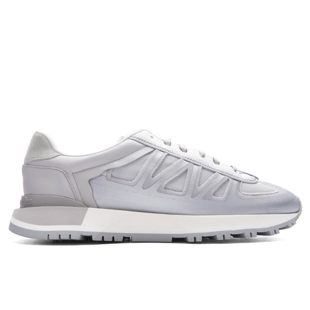 Maison Margiela introduces the 50/50 Runner Sneakers. Composed of mesh at the upper, the design includes a mesh lining and leather overlays. Mesh overlays are also placed, while the tongue branding and rubber outsole finishes the remainder of the look.
